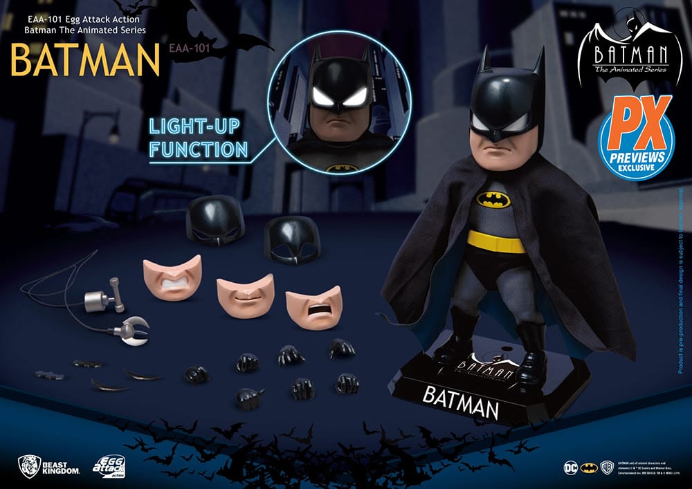 Based on the 1992 animated series version of Batman voiced by Kevin Conroy, this PREVIEWS Exclusive Egg Attack Action figure marks the first of Beast Kingdom’s new range of six inch, highly posable action figures based on the world of DC superheroes.