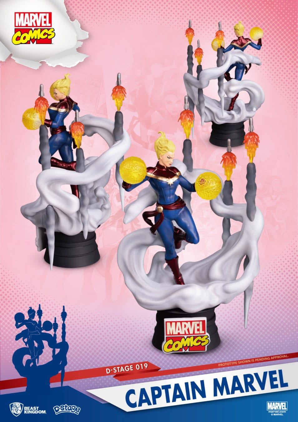 One of the most powerful superheroes in the Marvel comic universe, Captain Marvel has now officially burst out of the comic pages and joined the ranks of the Marvel Cinematic Universe, as the latest Avenger! As seen in the comics, Beast Kingdom proudly presents the latest in the D-Stage Staging Your Dreams line of dioramas: the PREVIEWS Exclusive Marvel Comics Captain Marvel DS-019 D-Stage 6IN Statue! With an extreme attention to detail, this D-Stage features Captain Marvel in her traditional flying pose! Using the latest in manufacturing techniques, this figure recreates her classic costume of red, blue and gold, even replicating the transparent effects of her energy trail when in flight or in the middle battle.