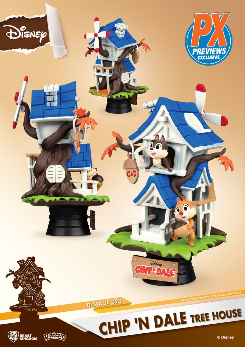 Come and be greeted by the warm welcoming of the PREVIEWS Exclusive DS-028 Chip’n’Dale D-Stage Statue in their very own Tree House, completed with their name sign and original house propeller. Perfect to cool down during those hot evenings, the cute house built on a pine tree is the perfect getaway for the two fun loving chipmunks and their guests.