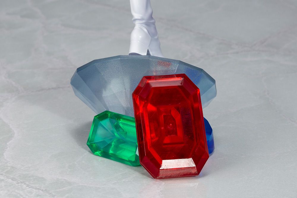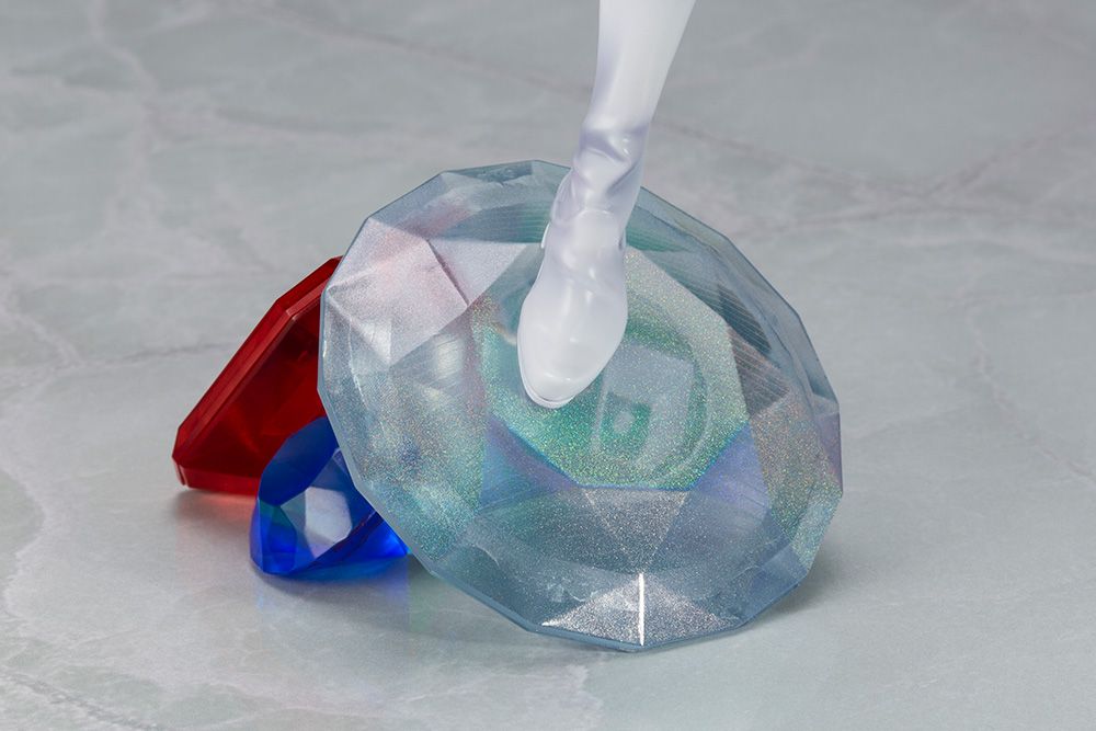 Black Cat arrives with her beautiful silver hair painted in pearl and wearing a bodysuit that has been painted with a glossy coating. Extraordinarily large diamonds and jewels painted with special polish coat lie by her feet, giving off a simple yet vibrant finish.