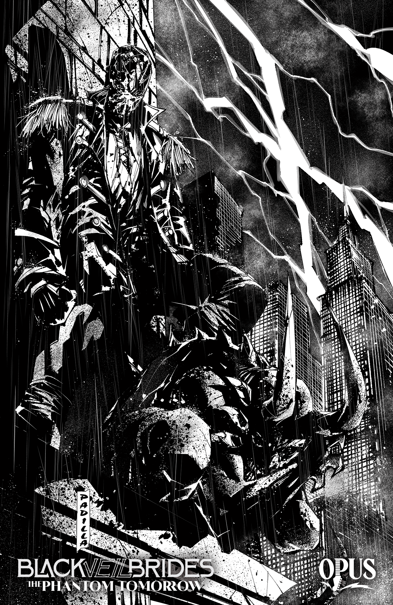 | Issue #1 – Limited First Print Edition The Phantom Tomorrow follows Dennis Kane, a scientist with an intellect matched only by his massive ego. When his hubris causes the world fall apart around him, a dark avenger is born of his agonizing shame. Resurrected as “Blackbird,” – a mysterious figure caught between life and death – he desperately seeks redemption, willing to fight through hell and back to get it. The Blackbird’s quest becomes is a beacon of hope to the downtrodden, and their uprising is coming. Black Veil Brides: The Phantom Tomorrow as a 6-issue series. The first print edition of each issue will be released as a prestige format limited edition collectible comic book, featuring cardstock covers, specialty foil treatments, glossy pages, and individual numbering. [Issue 1 of 6] Ships October 2021 First Print Edition Features: – Limited to 2000 copies – Individually numbered – Exclusive bonus content – Specialty foil treatment – Cardstock cover – Glossy pages – 48 pages Credits: Cover Artwork by Ryan Christensen Interior Artwork by Agustin Padilla Story by Andy Biersack Written by Michael Moreci Letters by Jacob Bascle Edited by Llexi Leon and Denton Tipton |