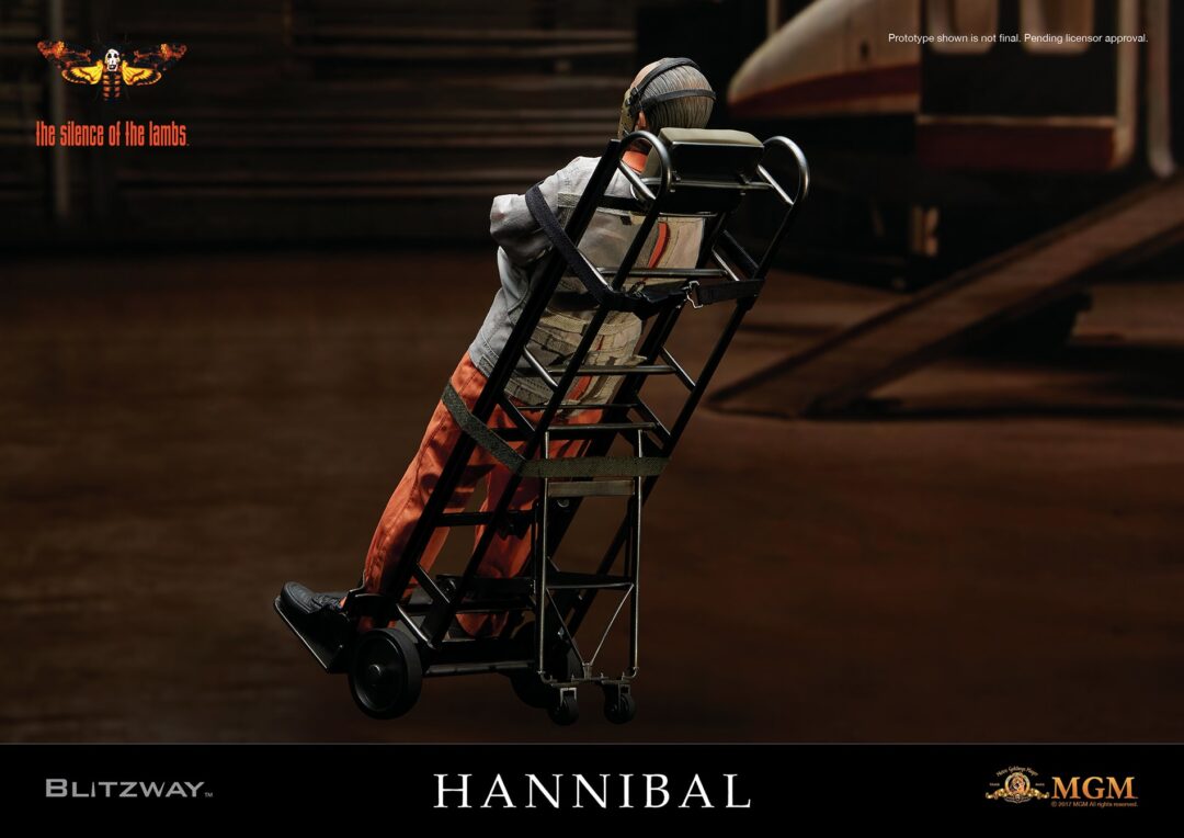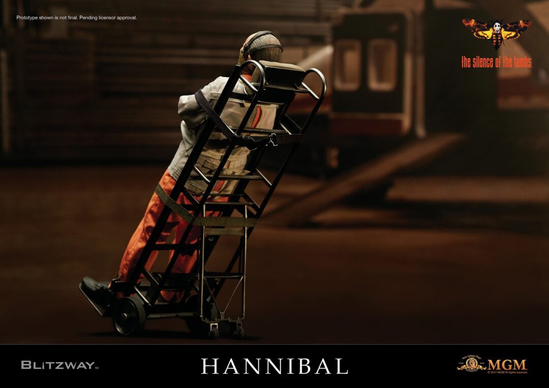 The BLITZWAY Hannibal Lecter Straitjacket version features accessories including a white t-shirt with prisoner number ‘B5160-8;“ 1 orange prison uniform with prisoner number ‘B1329-0;’ 1 screen-accurate straitjacket, as well as 1 iconic Hannibal face mask and an authentic movable gurney.