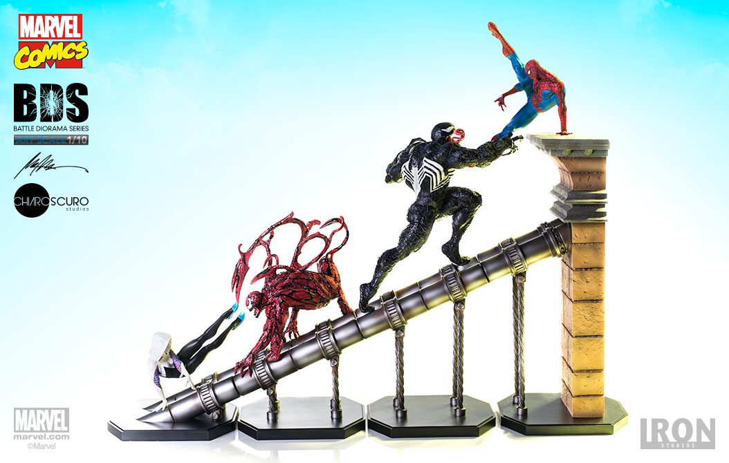 The first statues in the Iron Studios Battle Diorama series will be on prominent display at Bluefin“s booth during the Comic-Con International and will include Spider-Man, Spider-Gwen, Venom and Carnage! The first of these figures will be available via retail channels beginning in November with additional ones set for release in early 2018. Pre-orders are available now from authorized Bluefin retailers nationwide and also from a variety of leading online outlets.