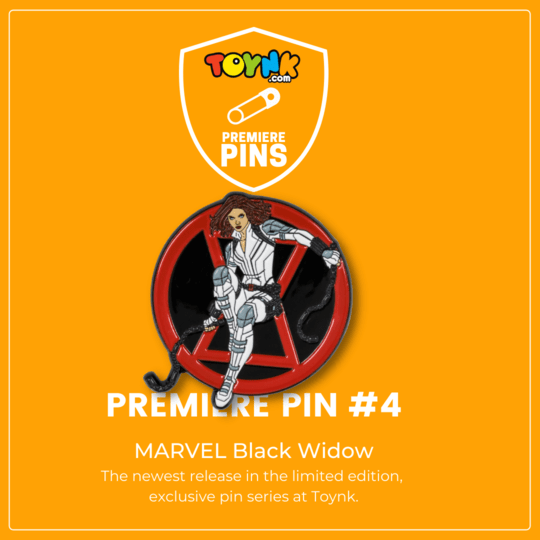 Toynk.com announces the arrival of the new Toynk Exclusive Marvel Black Widow Limited Edition Premiere Pin in celebration of the new Marvel movie Black Widow coming to Disney + and theaters near you on July 9th, 2021. This pin is the fourth edition in Toynk.com’s Premiere Pin Series introduced this year. This officially licensed Marvel Studios pin is from the manufacturer Salesone Studios, LLC.