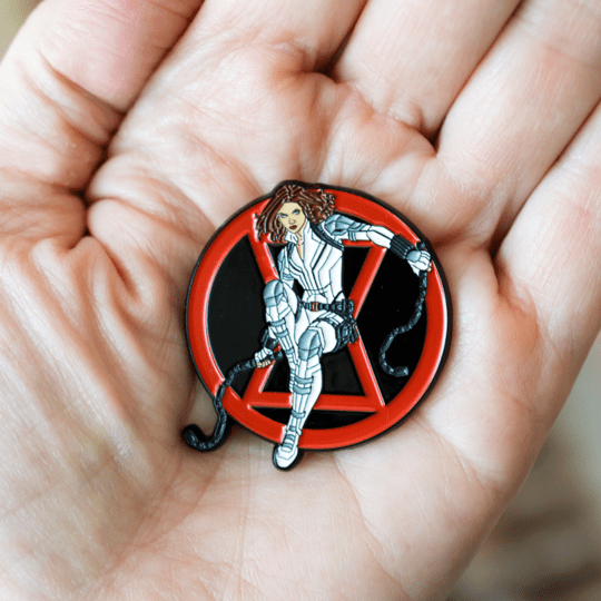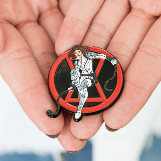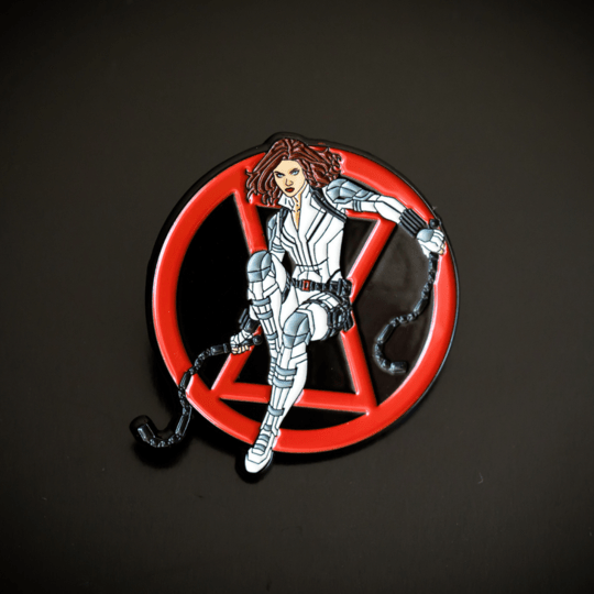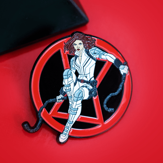 Wipe out the red in your ledger with this officially licensed Marvel Black Widow Enamel Pin only available at Toynk.