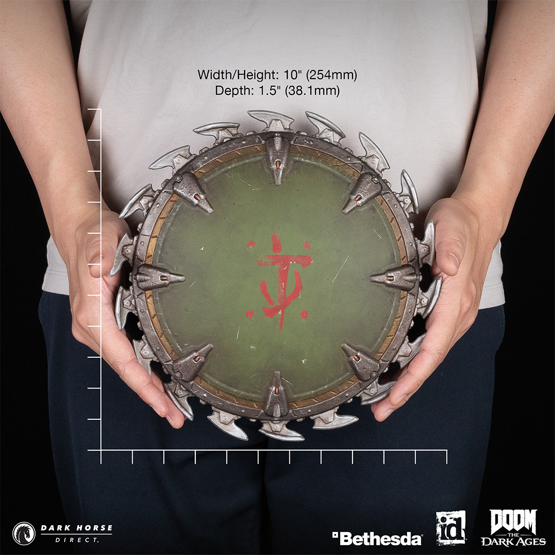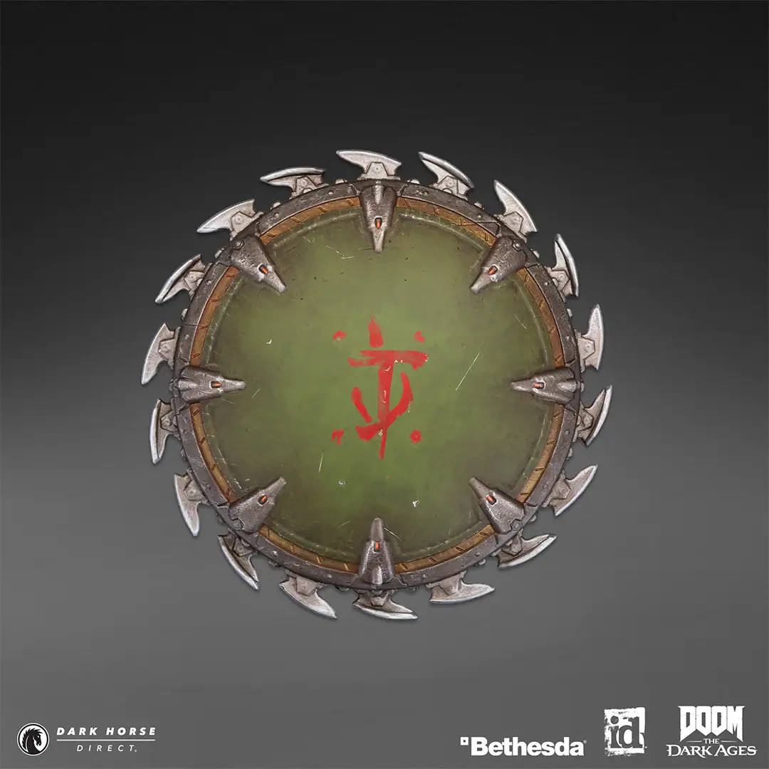 Dark Horse Direct, id Software, and Bethesda Softworks have joined forces to present the DOOM: The Dark Ages – Shield Saw 10” Wall Mount!