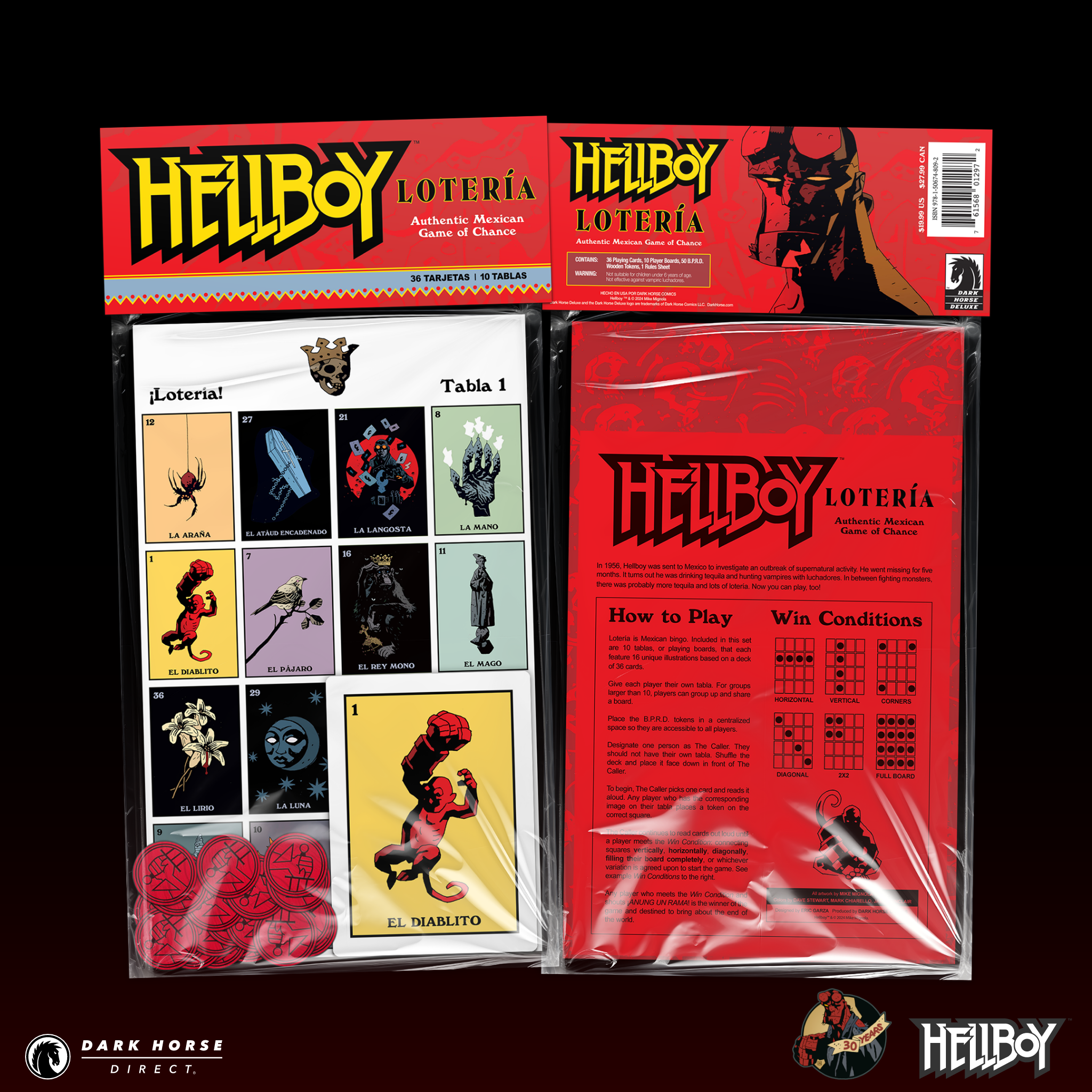 Lotería is a traditional Mexican game of chance, and now, fans can gather together to test their luck with the Hellboy-inspired version of this timeless game! From El Diablito to La Mosca, all 36 unique cards feature artwork from Mike Mignola’s Hellboy, hand-picked to best encapsulate the fun of Lotería. Each game also includes 10 tablas (playing boards) and 60 tokens.
