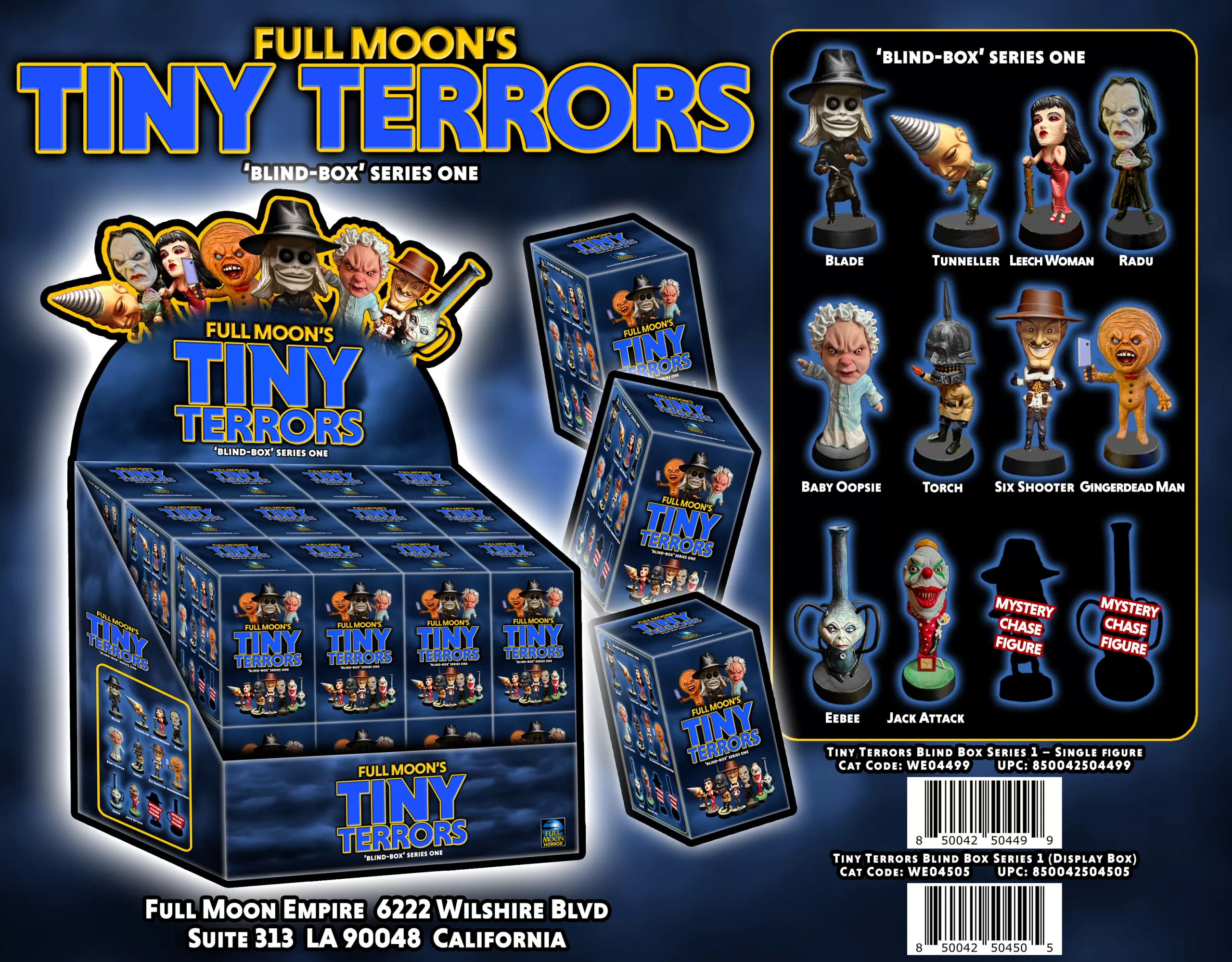 The Tiny Terrors “Blind Box” figures will be available to order for retail through Diamond Comics or individually through www.FullMoonHorror.com and Amazon, with in-store and exclusive retail availability to be announced at a later date. Visit https://www.fullmooniverse.