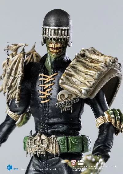 Following the announcement of a 1/12 scale Judge Dredd figure, and their acclaimed 1/18 four-inch range of articulated figures based on classic Judge Dredd characters, the HIYA EXQUISITE SUPER Series 1/12 Scale Six Inch Judge Death will retail at $89.99 (USD).