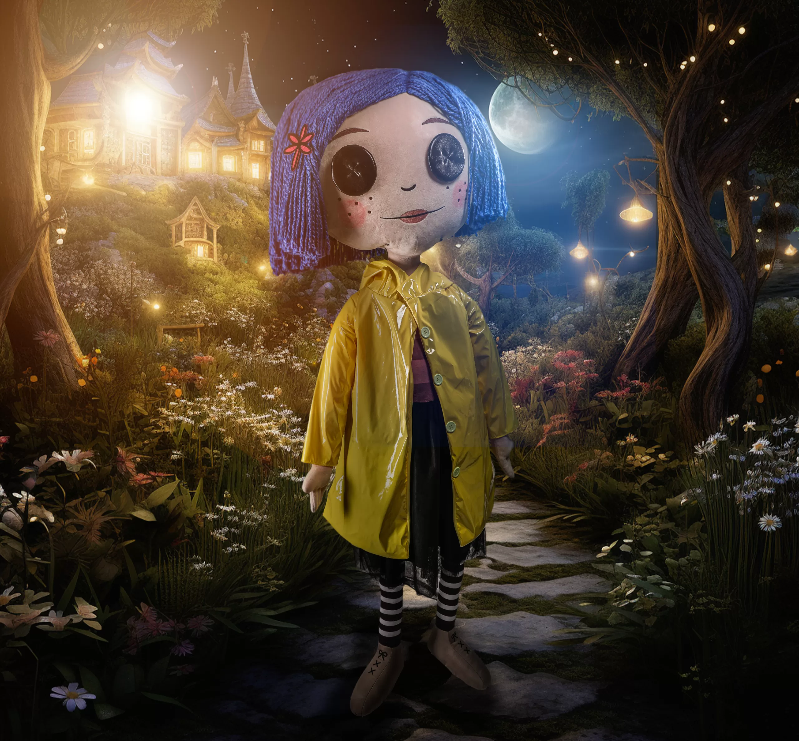 Kidrobot is excited to reveal a brand-new addition to its Coraline collection: the Coraline with Button Eyes Life-Size Plush Doll. At 5 feet tall, this premium plush is not only the largest item in Kidrobot’s Coraline collection, but the largest item available for order on Kidrobot.com. Coraline stands a foot taller than the largest figures in the Kidrobot Art Giants Collection, including the iconic 4-foot Dunny Art Sculpture.