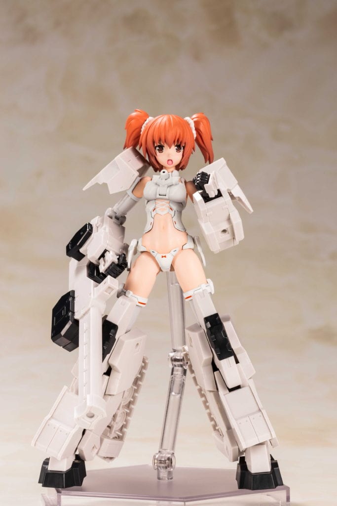 CROSSFRAME GIRL is a Kotobukiya original collaborative series that blends the innovative qualities of Frame Arms Girl with other series and contents. All model kits in this series come pre-painted and include tampo-printed face parts that allow for easy assembly for each separate part used to build each model. The 3mm connectors on the arms and feet, as well as PVC hands are compatible with various accessories and weapons from the MSG, Frame Arms, and Frame Arms Girl series. You can enjoy maximum customization by changing out arm, leg, and head parts with previously release Frame Arms Girl models.
