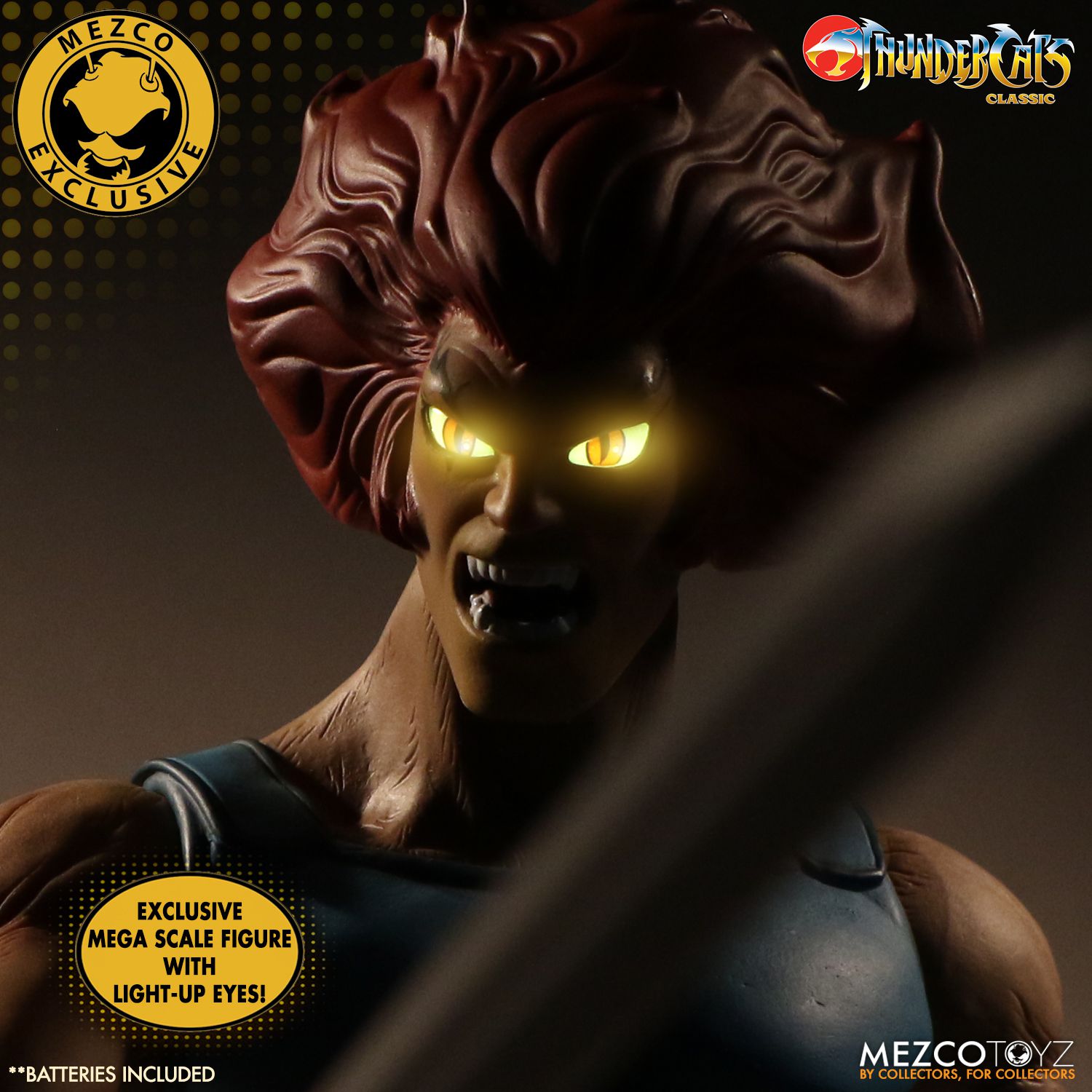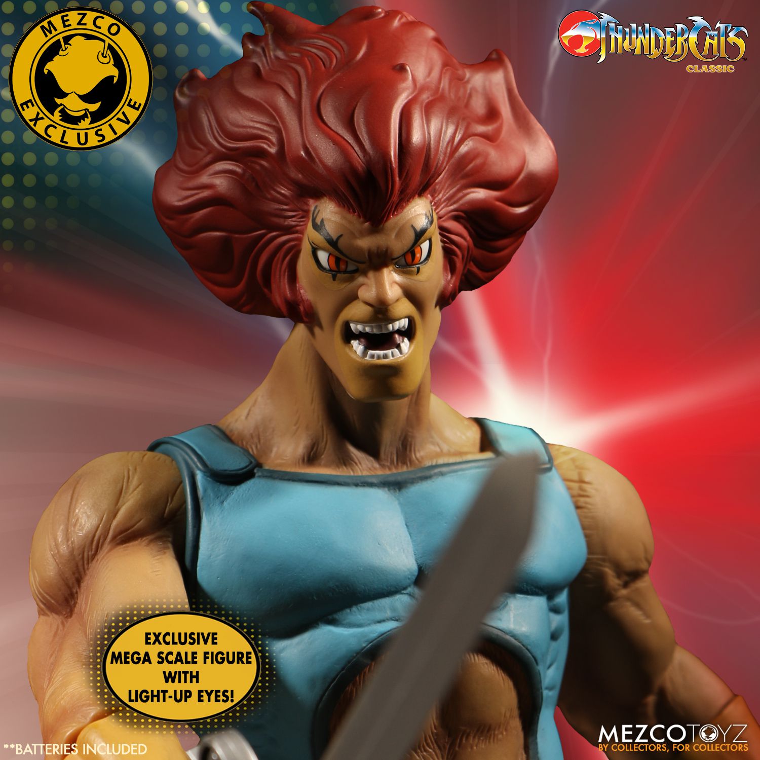 This Summer Exclusive Mega Scale Lion-O Light-Up Eyes Variant is only available through the Mezco Toyz website.