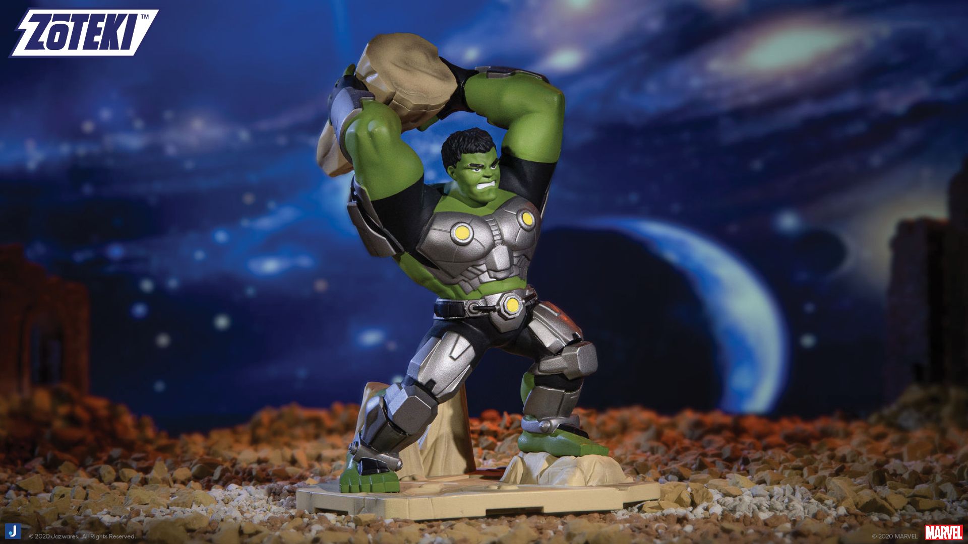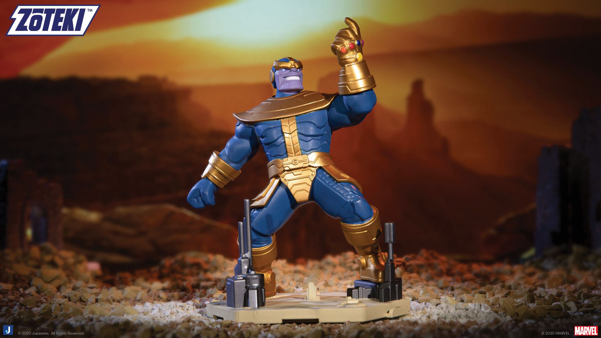 Inspired by Marvel“s blockbuster 2013 comic book crossover event “Infinity”“, Avengers ZÅteki Series 1 features fan favorite characters Iron Man, Thor, Hulk, Captain America, Captain Marvel, and Thanos, all authentically-detailed and posed for battle. Collectors can hunt down a seventh character, a mystery chase variant, to customize their display . Collect and connect pop culture“s greatest moments with ZÅteki!