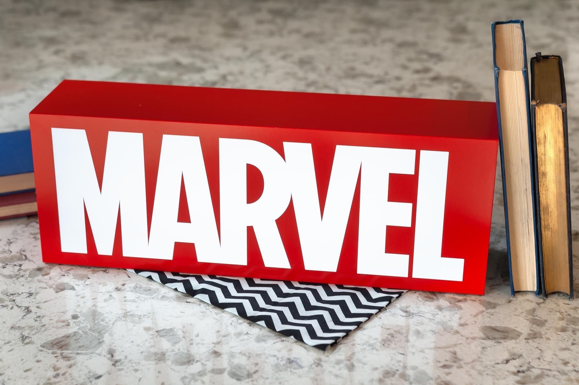 The impressive 17-inch Marvel Comics Official Logo Light Box uses energy-efficient and long-lasting LED light bulbs to illuminate your space. Convenient key mounting holes allow you to easily hang this fun piece of decor on your wall. This versatile lightbox can be powered using either USB or AC with the included cords.