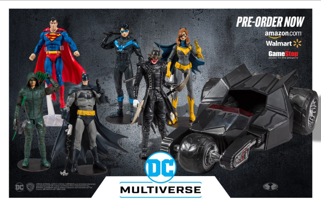 The first wave of McFarlane Toys“ DC Multiverse launches today with pre-orders at retailers around the globe. The DC Multiverse collector figures and related toys will be available at major retail locations beginning in January 2020 including Walmart, Target, Amazon, GameStop, BestBuy, and Walgreens.
