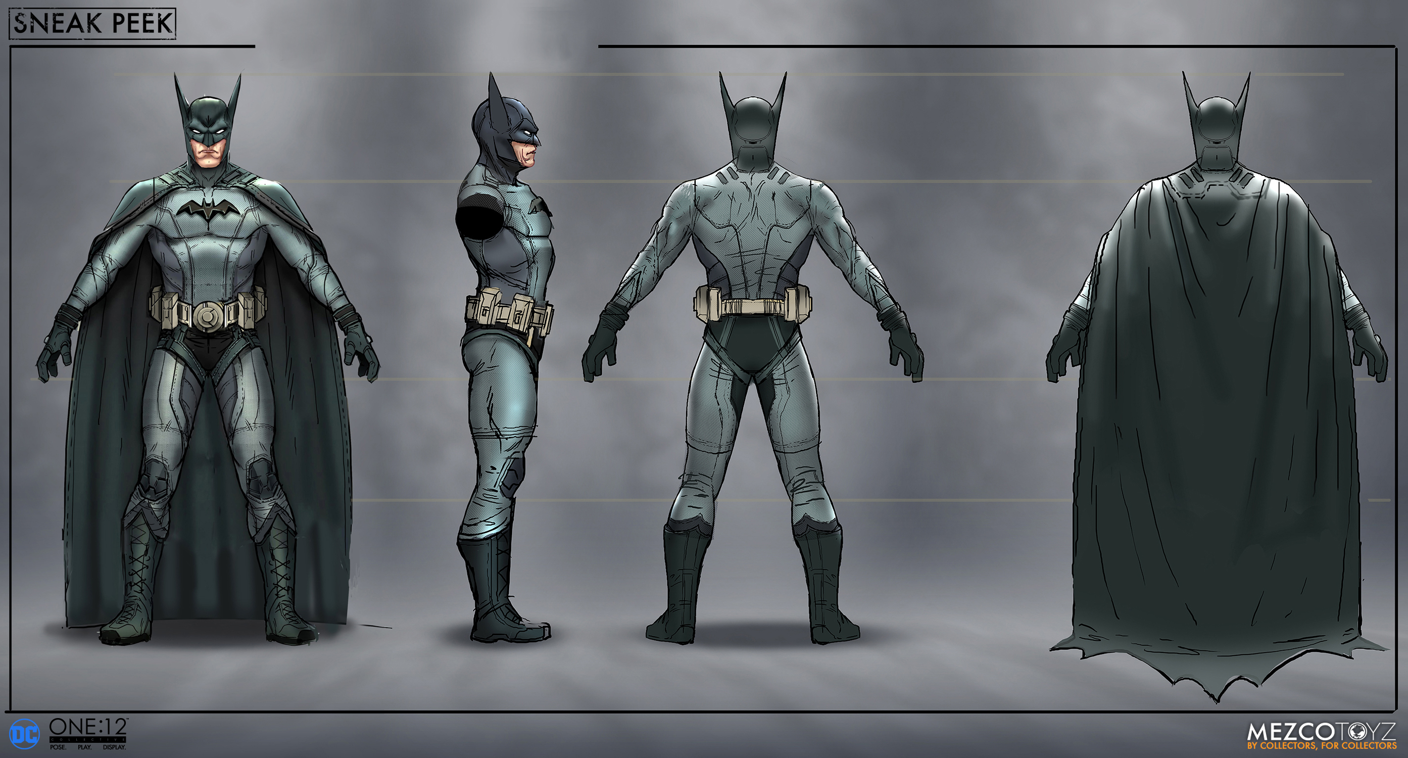 Below you will find some initial concept art, in progress digital renderings and some sneak peek pictures of the prototyped figure. You will see where the figure evolved from, what items did not make the cut and how we got from concept to execution on the One:12 Collective’s Batman-Ascending Knight figure.