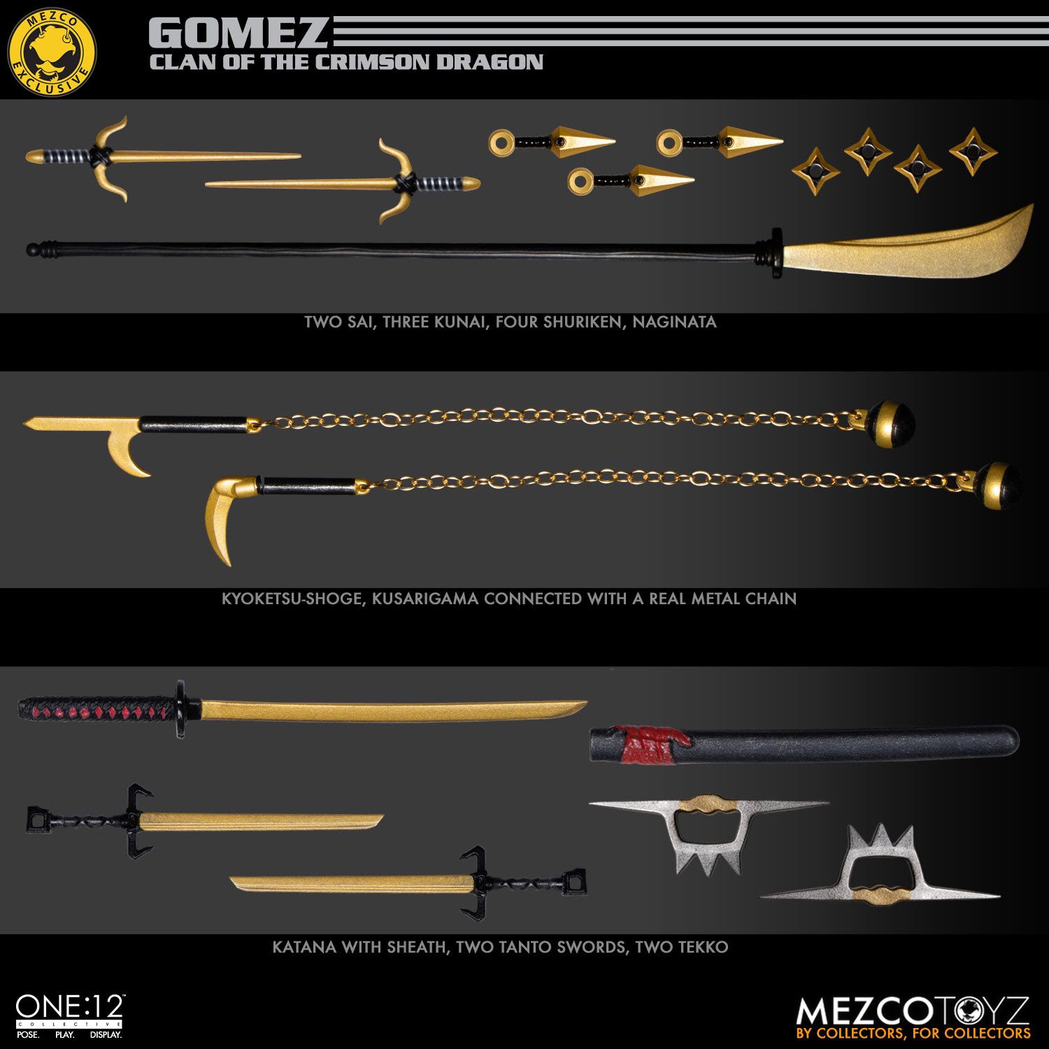 The One:12 Collective Gomez – Clan of the Crimson Dragon Edition figure is available at https://www.mezcotoyz.com/