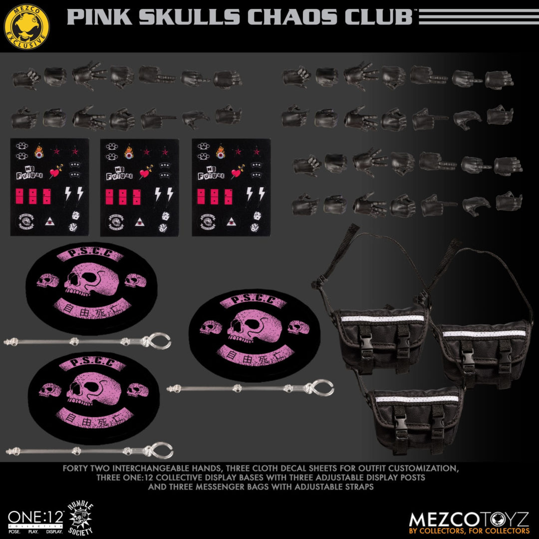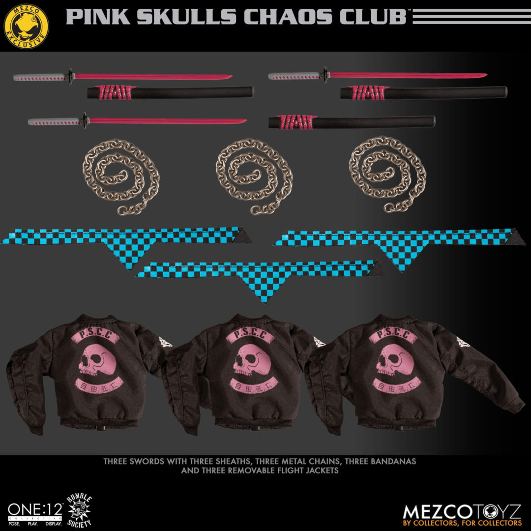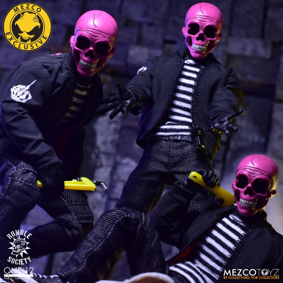 The One:12 Collective Rumble Society – Pink Skulls Chaos Club are available for preorder at https://www.mezcotoyz.com/