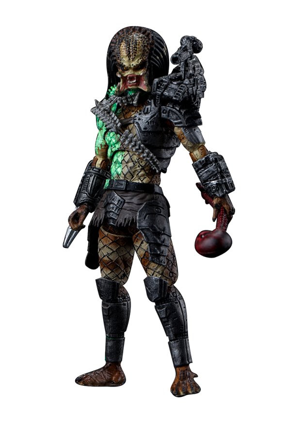 Based on the original 1987 Predator film where the Predator stalks his prey with deadly precision, this Battle Damage Jungle Predator is a 1/18-scale figure that features full articulation and stands approximately 4 1/2″ tall. This new PREVIEWS Exclusive Jungle Predator figure features a battle-damaged appearance and comes with a bloody spine accessory and a stand for easy posing and display.