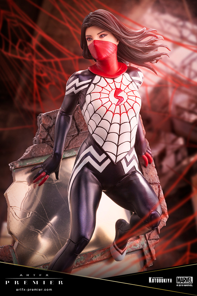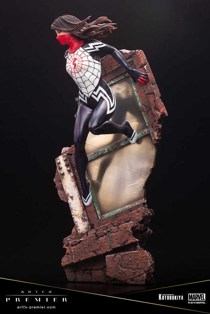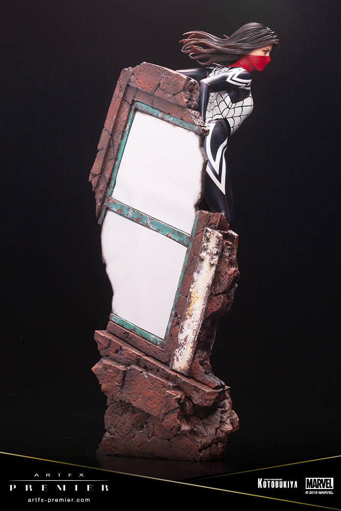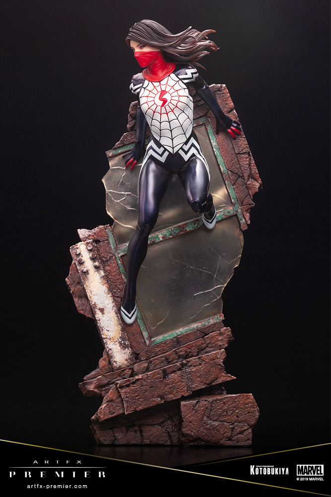 Despite the mask covering the already small face which is 3.5cm in size, the paint decorating the statue perfectly emulates the character“s personality seamlessly. The costume that was made by the web that comes straight out of Silk“s body captures the silky texture of the material by the countless layers of paint that has been used on this statue. Revel in the shine and almost realistic silky texture of the costume by the way the statue looks from any angle.