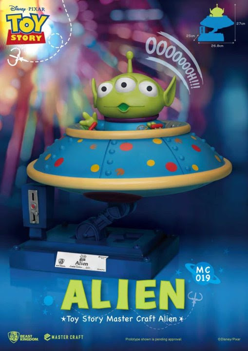 The Alien from Toy Story goes for a ride in a new PREVIEWS Exclusive statue from Beast Kingdom! A fully upgraded, enlarged version of Toy Story’s lovable Three Eyed Aliens, ready to rock your world! Beast Kingdom once again proudly presents the latest in the Master Craft high end series of collectibles: Toy Story Aliens. The Master Craft series continues the beauty of fine craftmanship, with an all hand painted, fully detailed 10″ tall sculpture that pops with subtle details, including a detailed flying saucer control panel, joysticks and a weathered looking base.