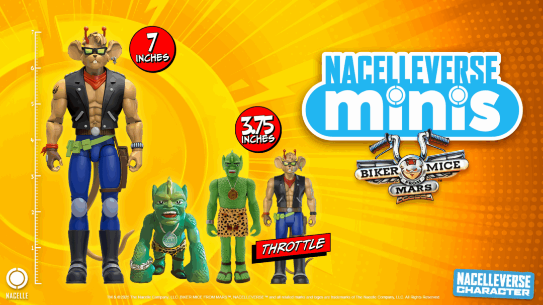 Wave Two figures are currently available for pre-sale, while Wave One figures and bikes are in stock now at Nacellestore.com and at select retail partners worldwide. Additional Wave Three figures will be announced in the coming months. Rimfire and other Biker Mice From Mars Wave Three figures as well as the Nacelleverse Mini Throttle are expected to be available to pre-order in 2026.