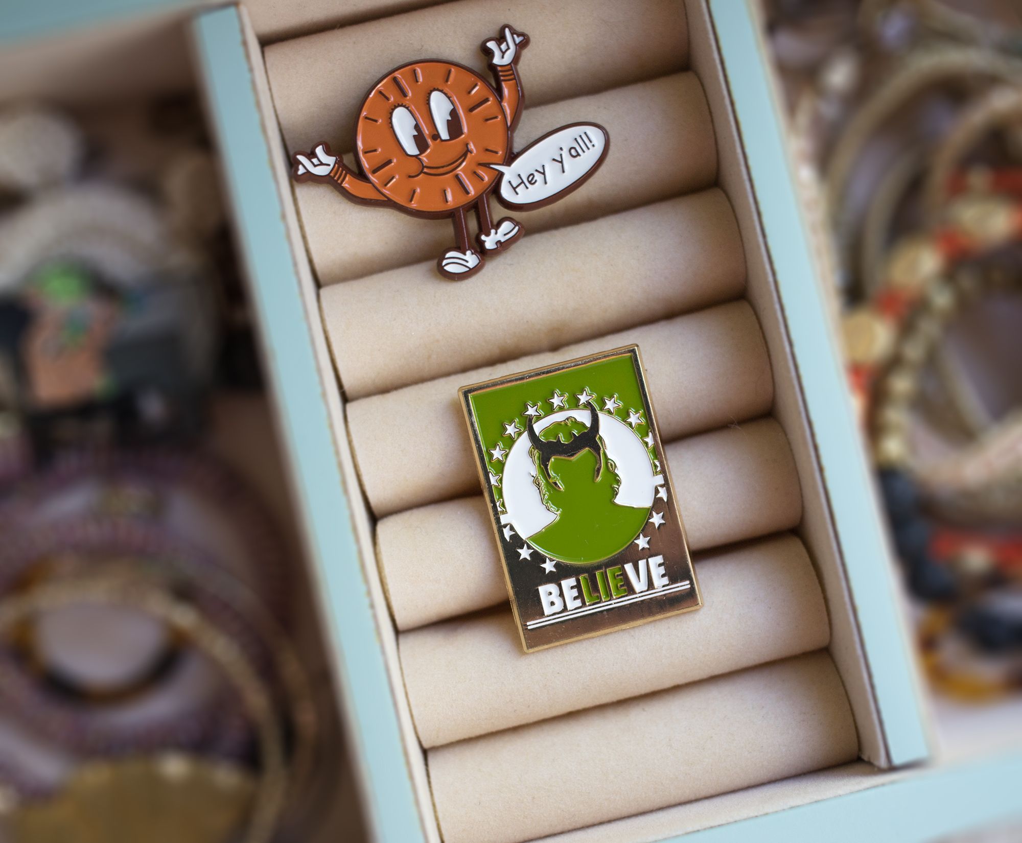 Bring Marvel’s popular anti-hero to your timeline with the exclusive Loki collector pin. Use the secure rubber backing to display the enamel pin on your everyday wear, including a jacket, bag, corkboard, or TVA prison suit for a timely look. That will do the trick! The pin retails for $12.99.