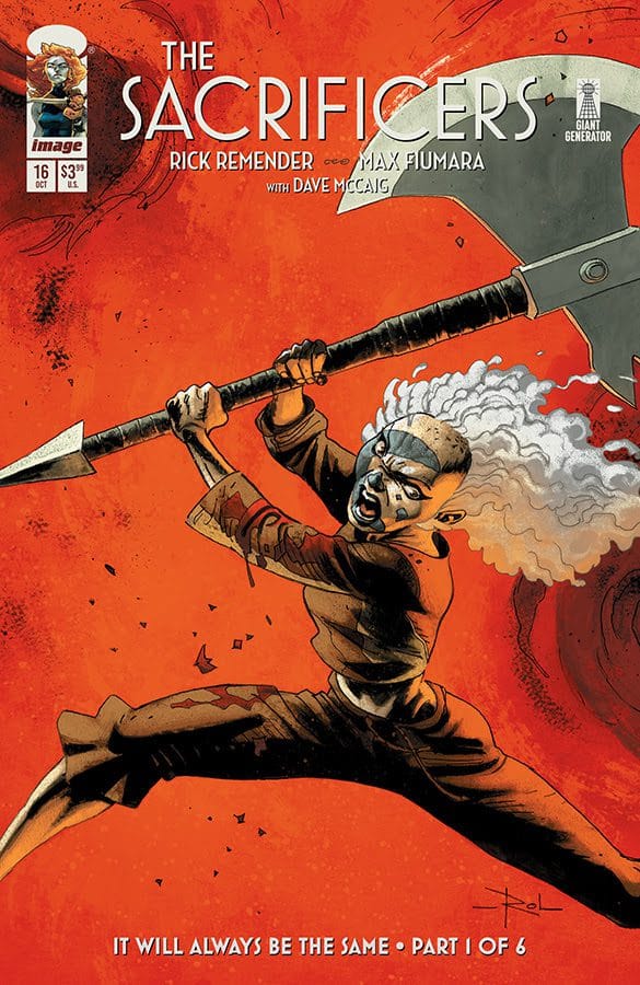 The critically acclaimed series The Sacrificers—by The New York Times bestselling writer Rick Remender (The Seasons, Deadly Class) and artist Max Fiumara (The Amazing Spider-Man, Four Eyes, Lucifer), Shuster award winning colorist Dave McCaig (The Walking Dead Deluxe), and published by Image Comics—will kick-off a new story arc this October. This new chapter in the ongoing epic will begin with The Sacrificers #16.