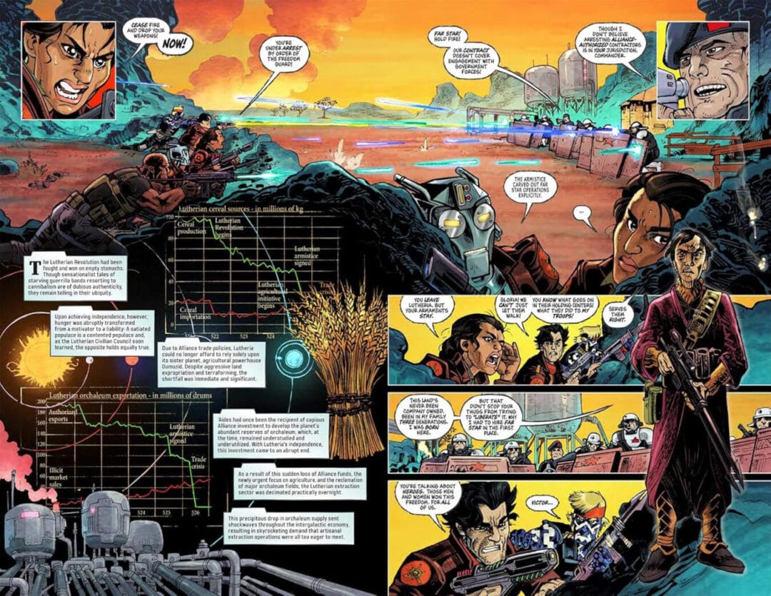 This all-new graphic novel series delves deep into a rich array of political themes echoing the scope and gravity of today’s hottest topics. Fans of series like Dune and East of West will enjoy sinking their teeth into this exploration of societal structure and suspenseful storytelling filled with separatist movements, counterrevolutionaries, and a looming trade war.