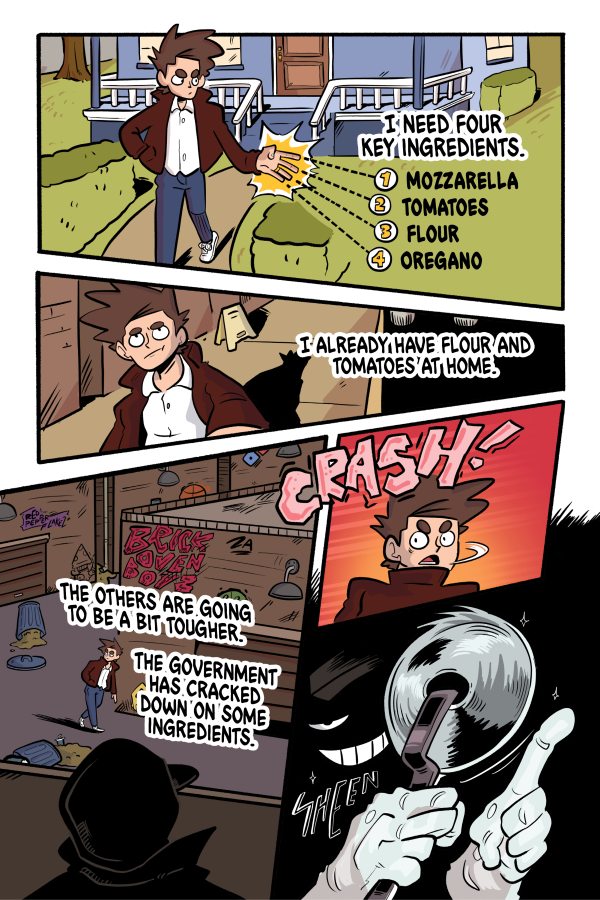 “Pizza is legit the greatest food in the world and what better way to pay tribute to the holy slices than with the greatest medium?” said Matt Summo. “Also, getting the chance to exorcise some demons on the page while getting the work with some of my best friends in comics is an absolute no-brainer for me”“This is the book that got me out of a creative rut and started on my comics journey,” said James Ferguson. “The best way to make comics is to make comics and the best way to do that is with friends. And to do it about something as outlandish—and terrifying—as outlawed pizza? The possibilities are as endless as the amount of toppings you can think of.”