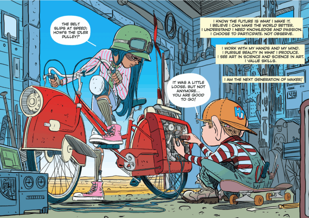 Now kids of all ages can unlock the power of hands-on learning with Howtoons by Saul Griffith, PhD (MacArthur Genius Grant recipient, founder and chief scientist at Otherlab), New York Times bestselling artist Nick Dragotta (Absolute Batman, East of West), and toy designer Ingrid Dragotta—an award-winning, comic-style guide that blends storytelling, science, and engineering and is published by Image Comics.