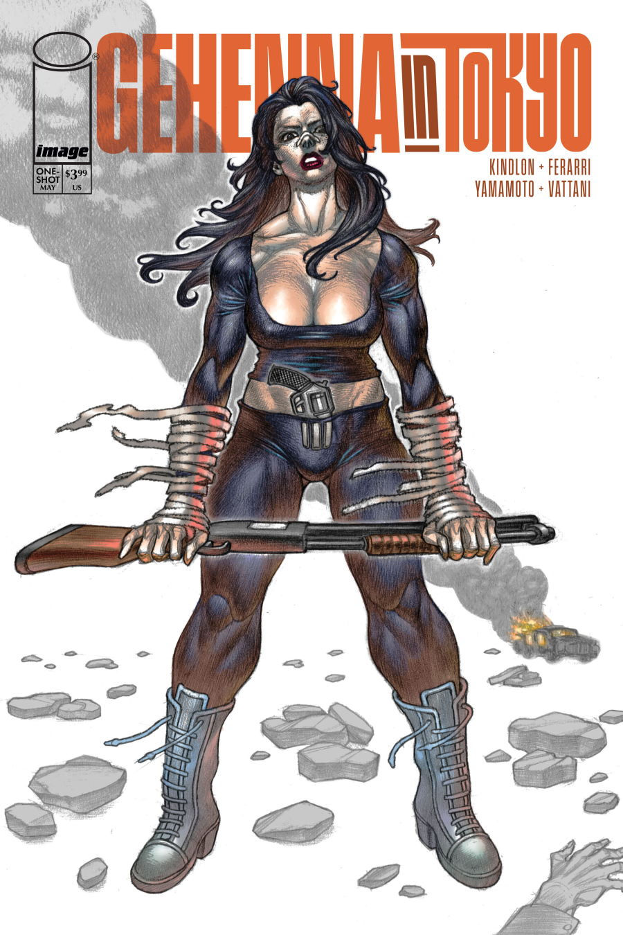 Fan favorite co-creators Patrick Kindlon (Frontiersman) and Marco Ferrari (Scarlet) team up with mangaka Atsuji Yamamoto (Metal Max, X-Men) for an all-new adventure in Gehenna in Tokyo. This exciting one-shot tale is set in the same world as Kindlon and Ferrari’s Gehenna: Naked Aggression and will hit shelves in June from Image Comics.