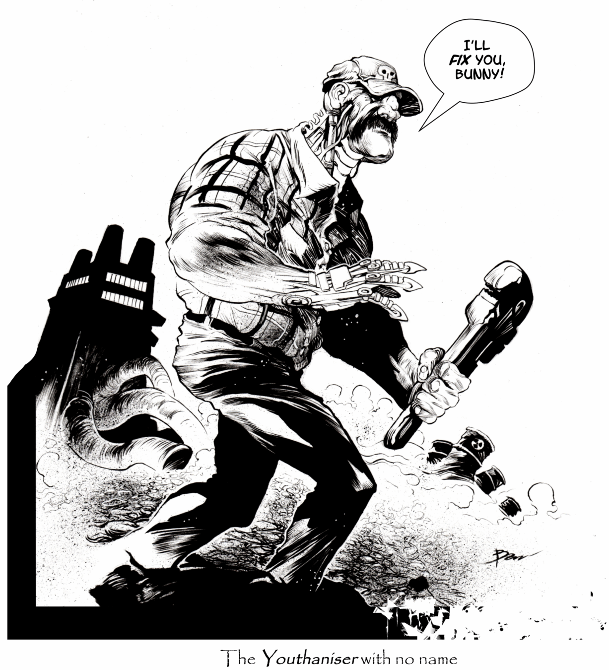 A battle for technological supremacy left the world in ruins. As the elite fled to their fortified city, Methuseland, where genetic enhancements granted them indefinite life, the surviving youth of the wasteland—dubbed “Guttersnipes”—became a rebellious force. To crush this insurgence, Methuseland’s rulers unleashed the Youthanisers—cybernetic enforcers designed to keep the young in line. In this dystopian warzone, young rebels Freydank and Pixie find themselves on the run, pursued by the most fearsome of the Youthanisers. But when they unearth a long-buried relic, the spark of revolution ignites, setting the stage for an all-out battle against the oppressive elite.