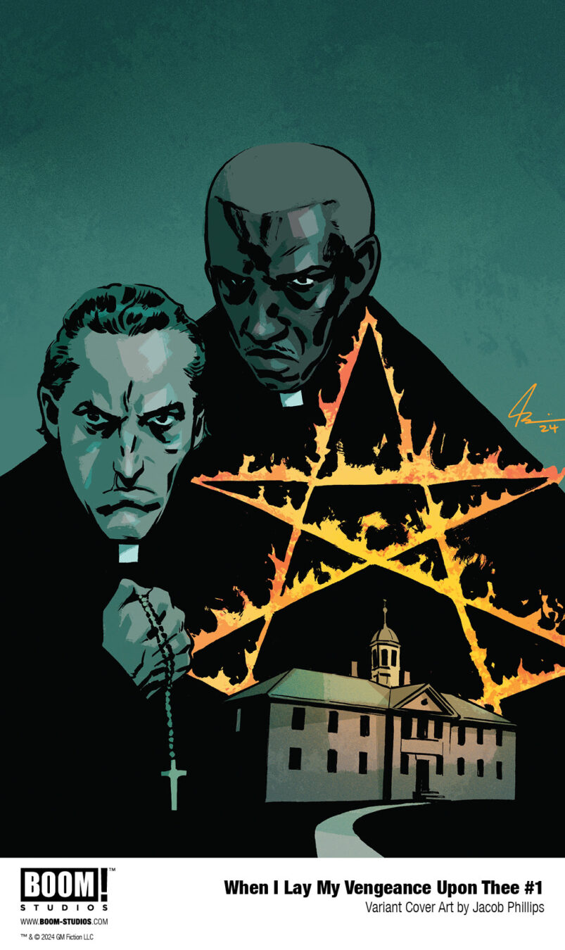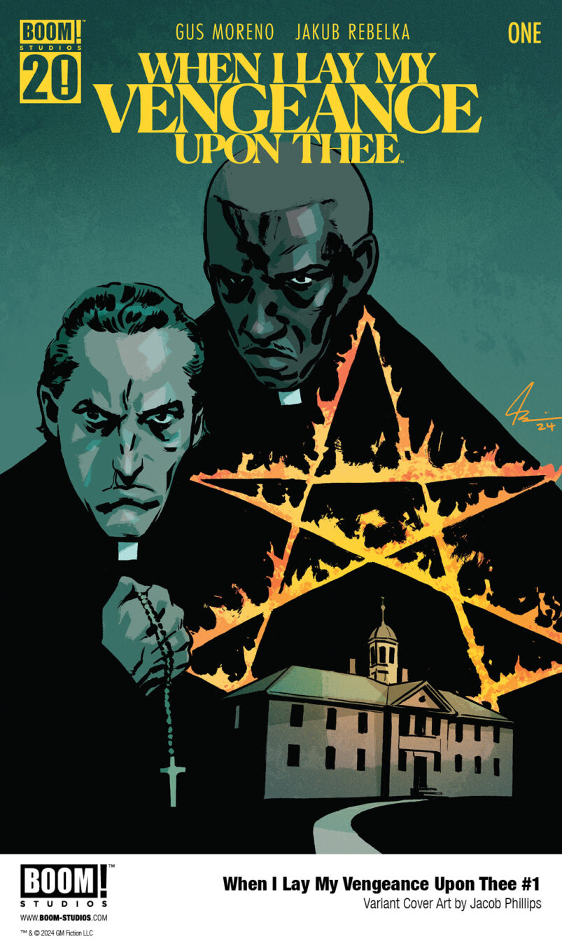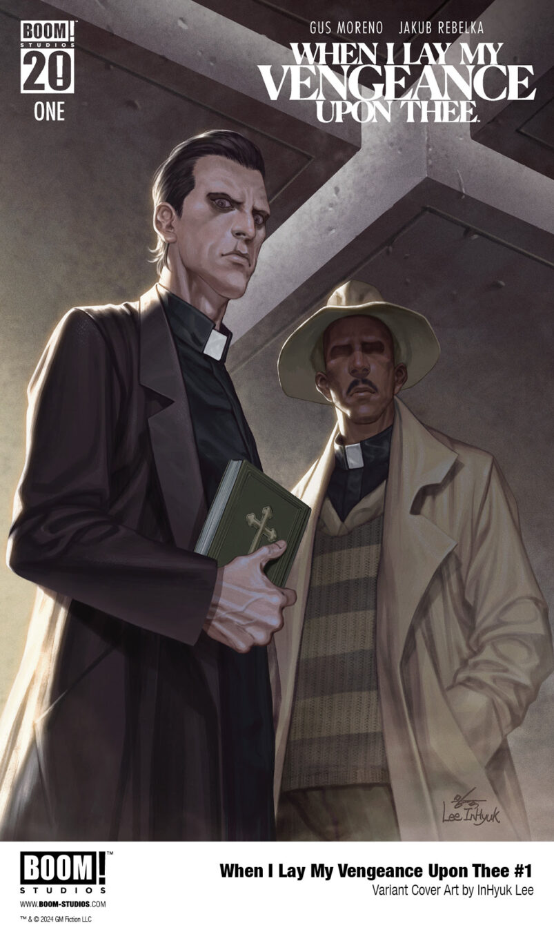 WHEN I LAY MY VENGEANCE UPON THEE #1 features main cover art by series artist Jakub Rebelka, and variant covers by acclaimed illustrators Jacob Phillips (That Texas Blood), InHyuk Lee (Mighty Morphin), Jae Lee & June Chung (The Dark Tower), and a limited BOOM! Studios Direct Reserve exclusive variant by Jae Lee & June Chung!