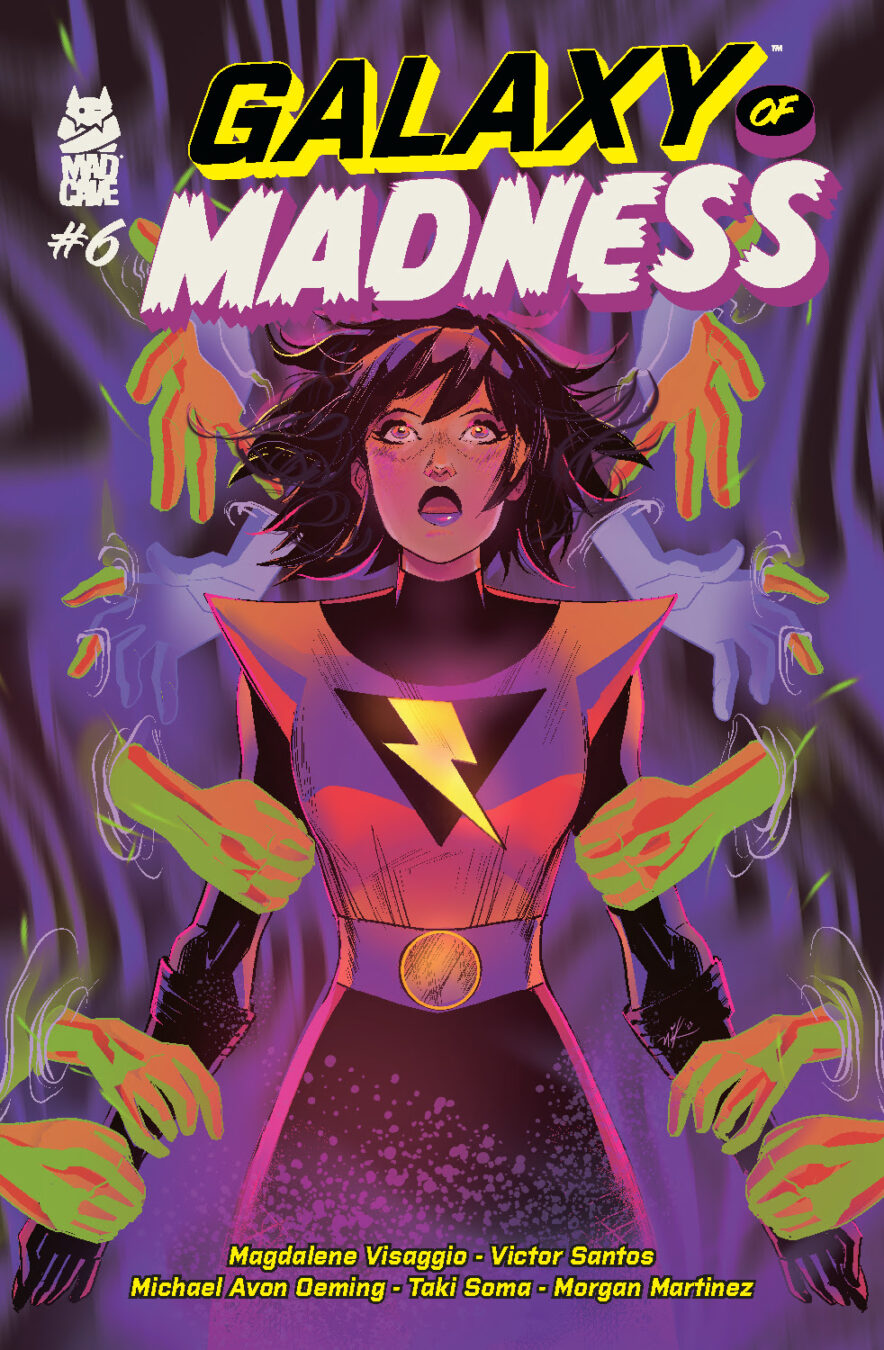 “I love old sci-fi, especially ’50s and ’60s films like Forbidden Planet and the Showa-Era Godzilla movies, with their colorful adventure, glittery astronaut suits, and rubber monsters,” said Victor Santos. “So, when Magdalene and Mike asked me to work on Galaxy of Madness Vol. 2, I couldn’t refuse—it was a perfect chance to explore this imagery and try new storytelling styles inspired by classic comics. Having collaborated with Mags on Tales of Nottingham, I admire her ability to create a diverse cast of deeply human, though sometimes extreme, characters. Working with Mad Cave has been so seamless; I hope this is just the beginning.”