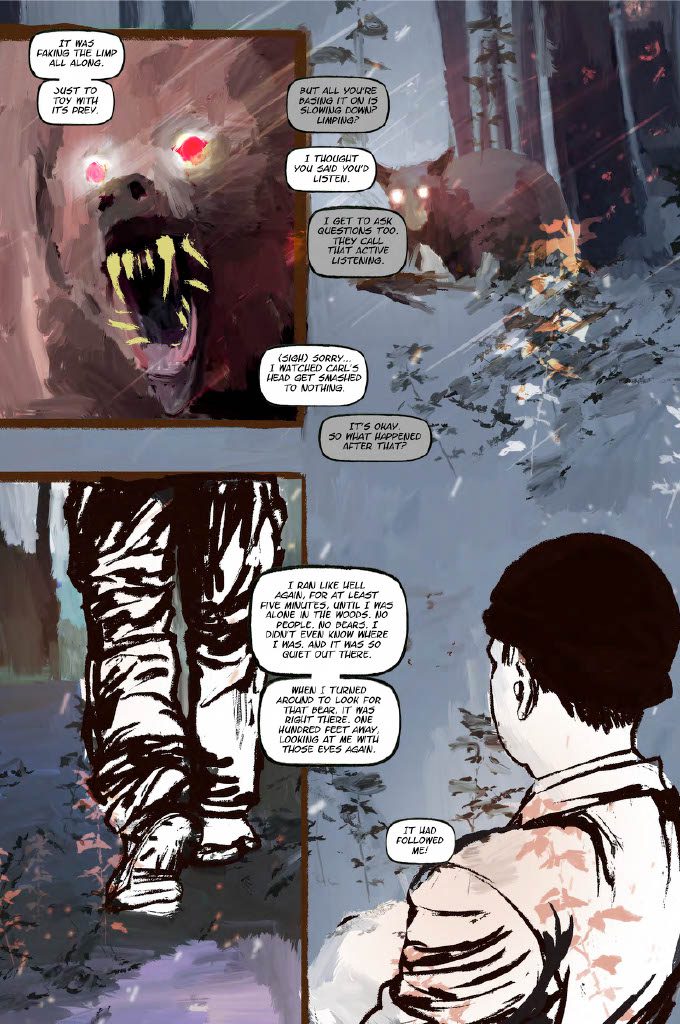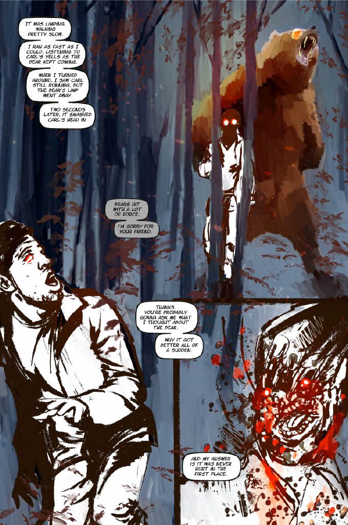 “I really wanted to explore the dynamic between humanity and the animal kingdom, and what would happen if that delicate balance were upset,” says writer/creator, Keith Foster. “At the same time, I wanted to tackle a grisly horror that could shock and entertain while addressing those deeper issues. Animals is the by-product of those explorations, filtered through the lens of Nico’s dark, noir-inspired art, and I’m excited to share the full story we’ve been developing together over the last couple of years.”