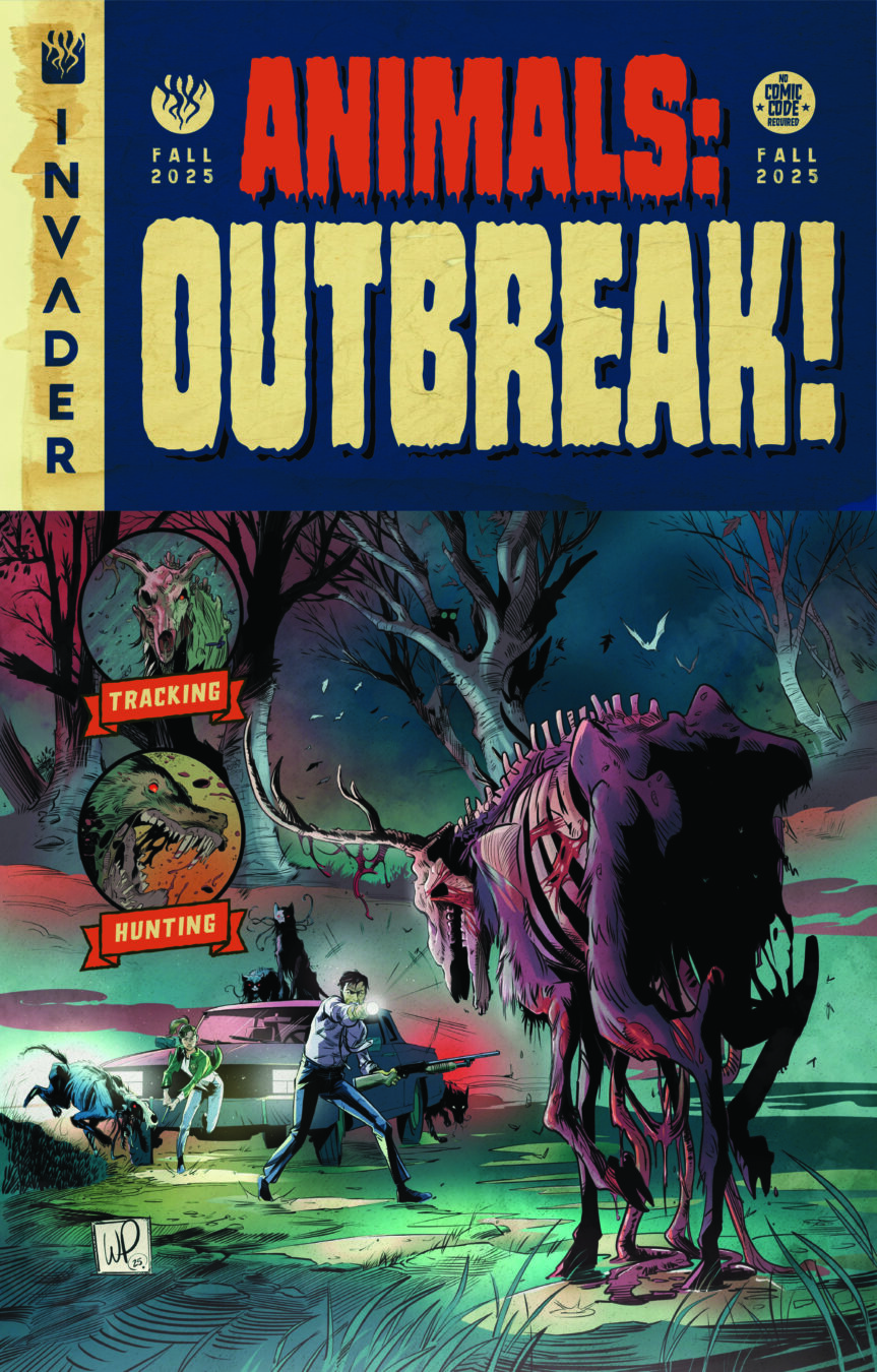 There have been countless stories about humans rising from the dead, but what if animals were the ones who came back? And what if they decided it was time for a reckoning with those who had violated their habitat? That’s the premise behind Invader Comics’ new graphic novel, ANIMALS, from the twisted mind of writer Keith Foster (Kodoja, Three Protectors) with dynamic kinetic art by hot newcomer Nico Miérez.