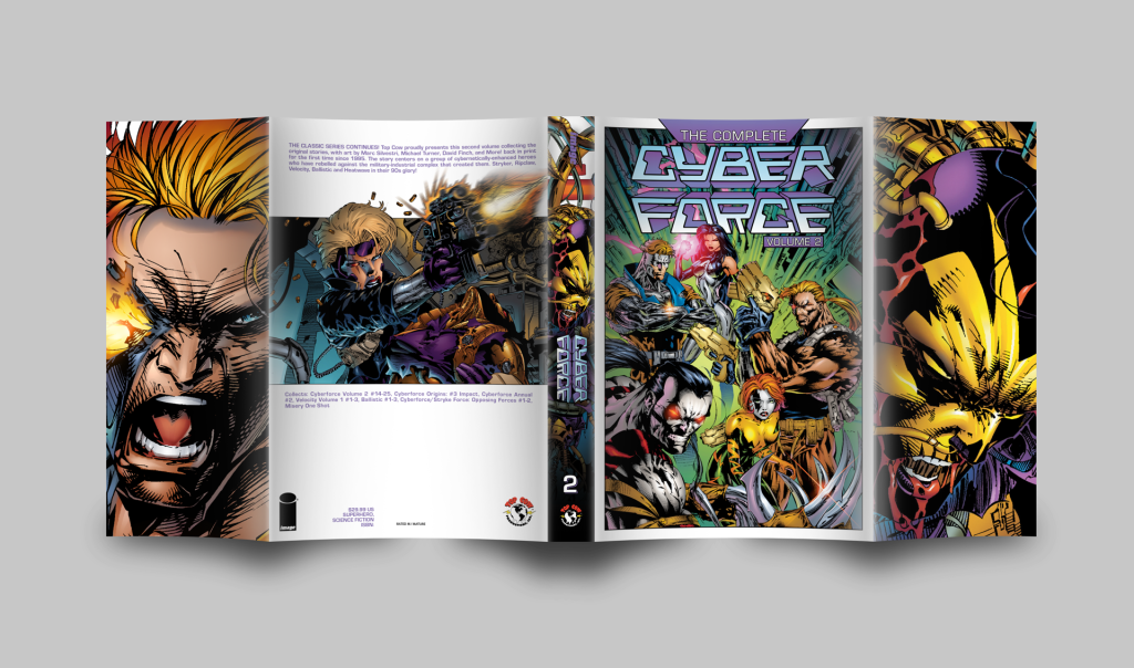 Cyber Force Complete Collection Vol. 2 includes: Cyber Force Vol. 2 #14–25, Cyber Force Origins #3, Impact, Cyber Force Annual #2, Velocity Vol. 1 #1–3, Ballistic #1–3, Cyber Force/Stryke Force: Opposing Forces #1–2, and the Misery one-shot.