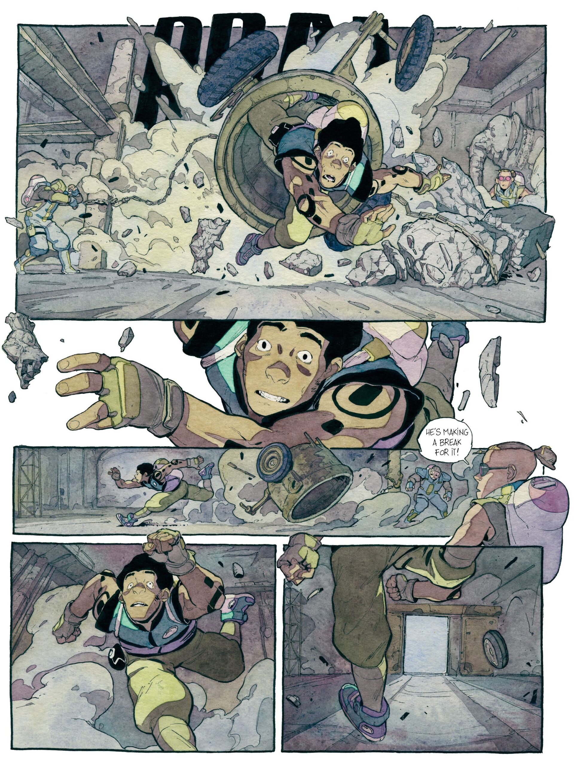 “We fell in love with Merwan’s work when we first encountered it in French,” said Magnetic Press Publisher, Mike Kennedy. “Aster of Pan (originally titled “Mechanique Celeste”) was unlike anything we had seen before, evoking the dynamics of AKIRA with the expressiveness of The Long Halloween but with painted watercolor textures simply defies comparison. We were proud to publish several other books by Merwan since but Imagine our excitement to return to the world of Pan and that family of beloved characters in THE SOURCE… it’s a post-apocalyptic future we love spending time in!”