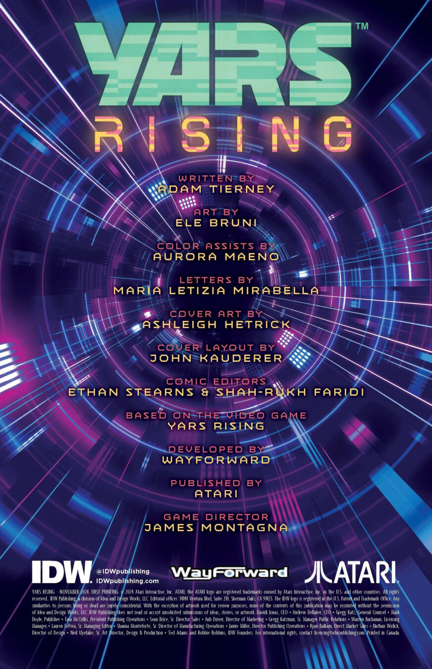 Atari and renowned comic publisher IDW Publishing have announced a partnership to release an official single-issue companion comic book set in the world of Yars Rising, Atari’s and developer WayForward’s newest entry in the decades-spanning Yars universe. The 32-page comic acts as a prequel to the events of the game, and will be available online and in traditional comic book retail stores on November 13 for $4.99.