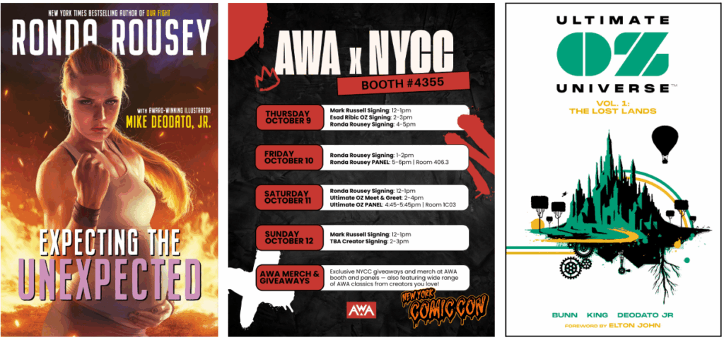 AWA Studios is heading to New York Comic Con with two panels highlighting upcoming titles, EXPECTING THE UNEXPECTED and ULTIMATE OZ UNIVERSE: THE LOST LANDS. On Friday, fans can join UFC champion and WWE superstar Ronda Rousey as she dives into the creation of her debut graphic novel, and on Saturday, the creative team behind ULTIMATE OZ UNIVERSE: THE LOST LANDS will give an inside look into the world of OZ.