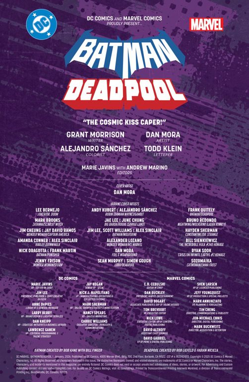 Batman and Deadpool in “The Cosmic Kiss Caper!” by Grant Morrison, Dan Mora, Alejandro Sánchez, and Todd Klein