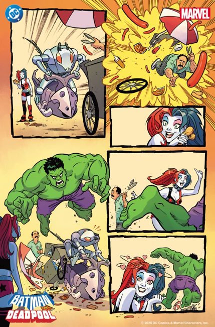 Harley Quinn and The Incredible Hulk in “Harley & Hulk’s Amazin’ Saturday!!!!” by Mariko Tamaki, Amanda Conner, Tamra Bonvillain, and Dave Sharpe