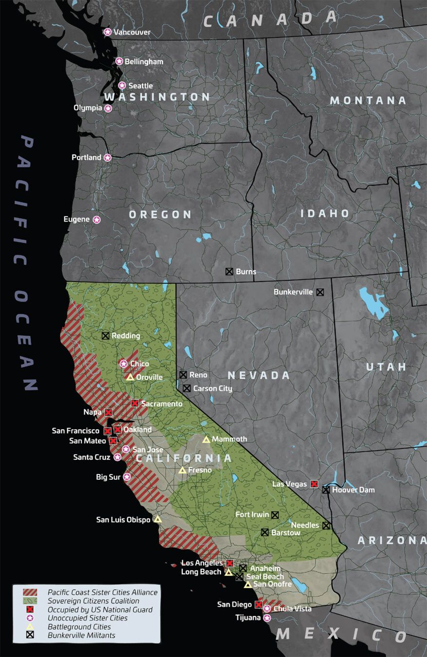 In CALEXIT, the citizens of the California Sovereign Republic struggle to seize power back from U.S. occupying forces. Jamil, a warzone courier (aka smuggler), and Zora, a young leader in the Mulholland Resistance, fight to escape Occupied Los Angeles — but it’s total war on the streets of Los Angeles as California attempts to seize freedom or die trying.
