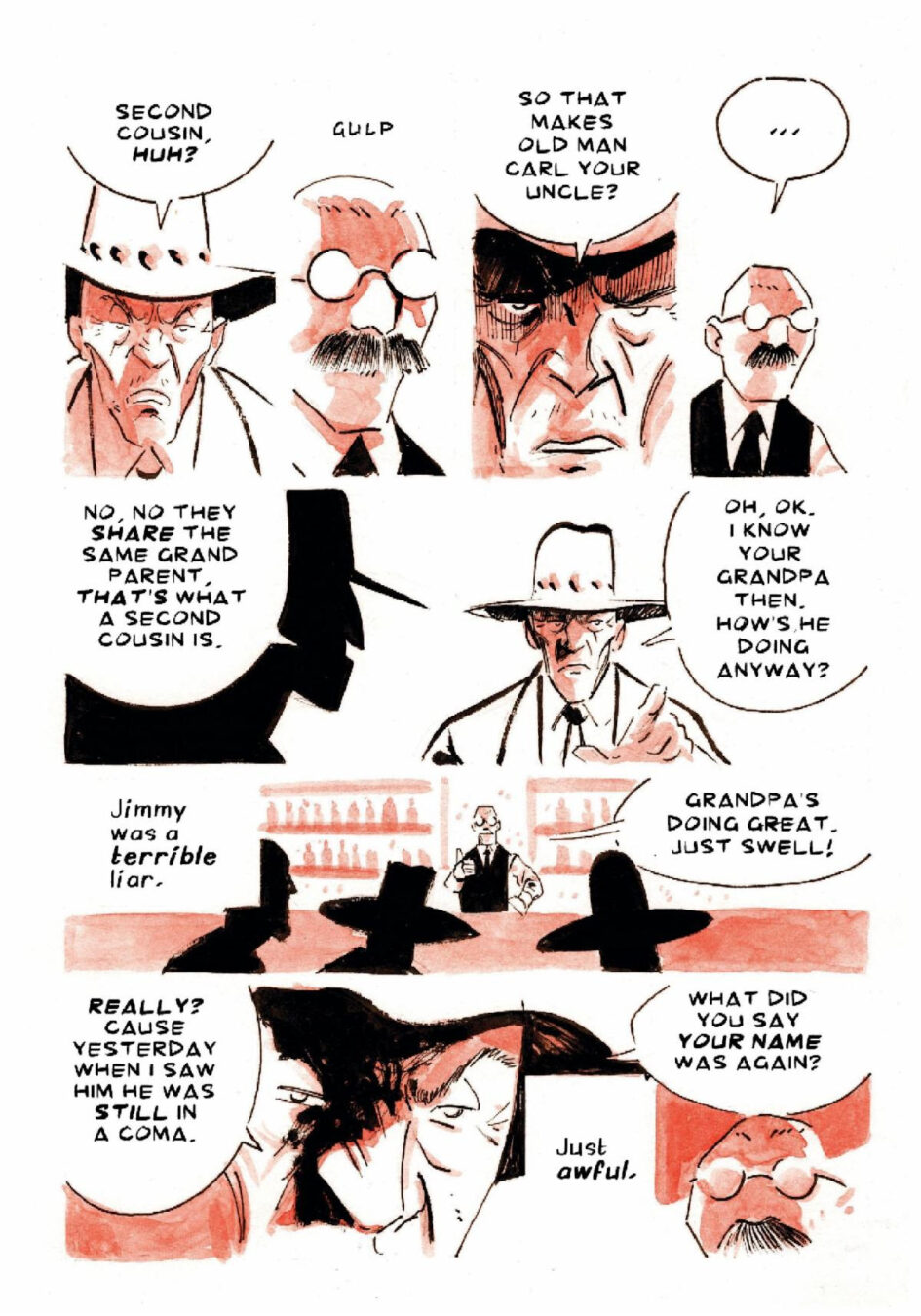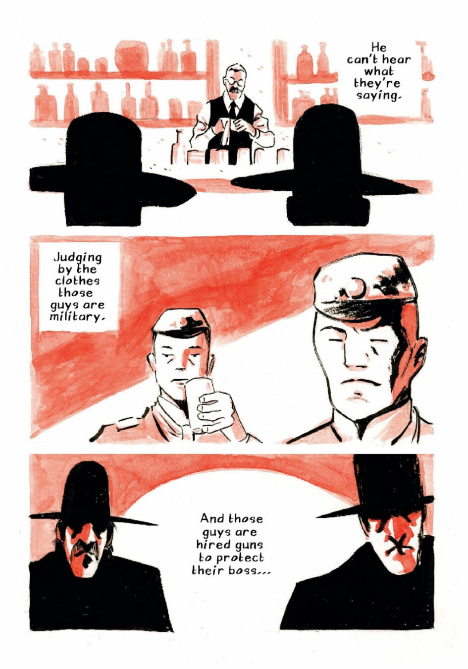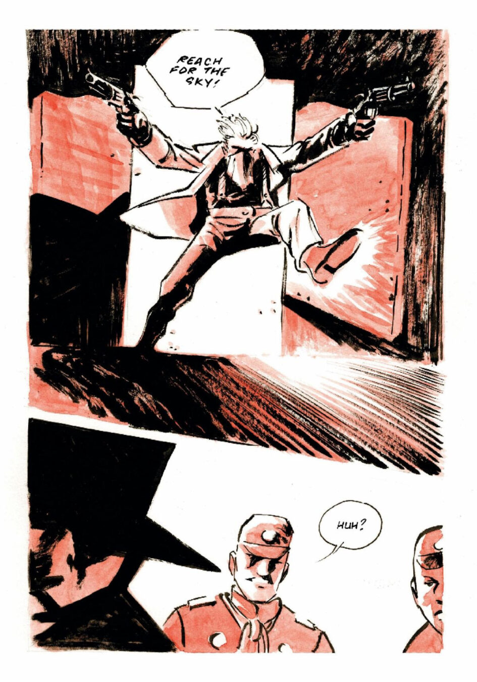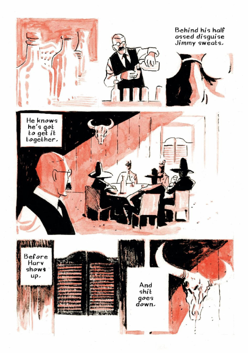 “I love drawing the Western environment and wanted to write crime stories in the vein of Alfred Hitchcock—psychological edge, unexpected twists, and a focus on the characters’ internal struggles and paranoia,” added Kuruneru. “These two stories deal with a constant desire for wealth and power, and how that obsession can manifest into something monstrous.”