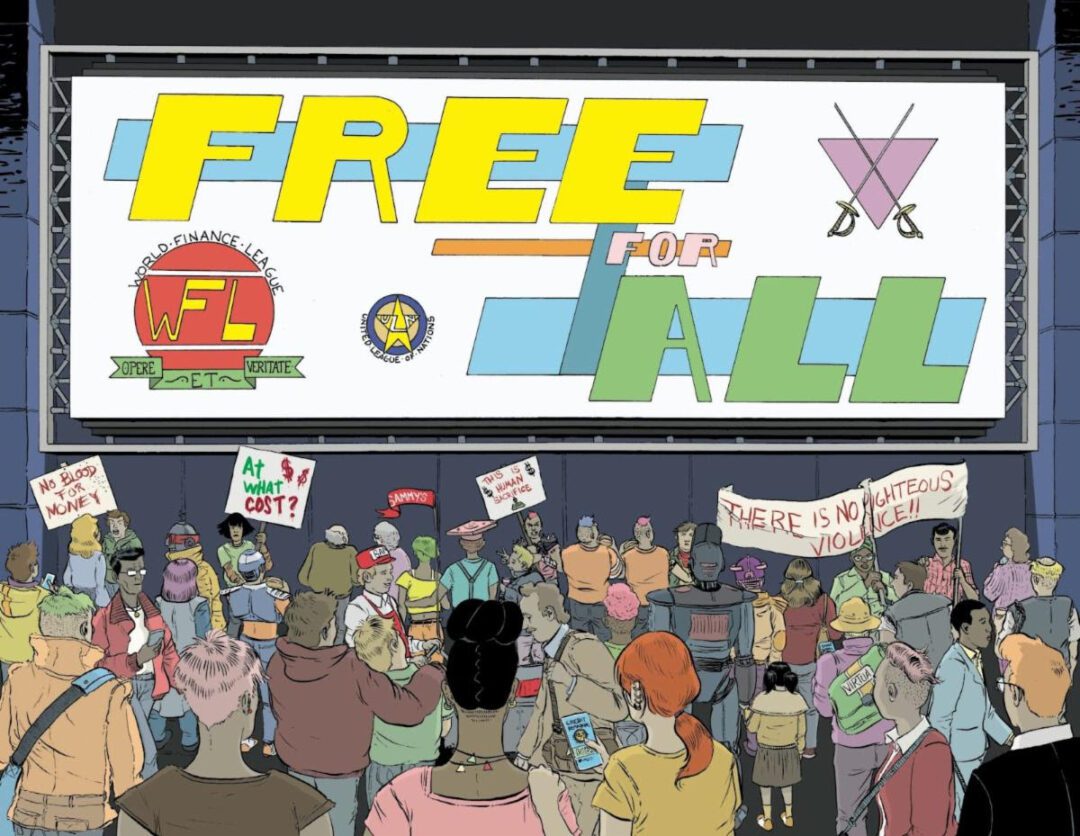 It’s every shareholder for themselves when death and bankruptcy collide in FREE FOR ALL #1, a giant-sized, one-shot spectacle of commerce and carnage coming this March from Eisner Award-nominated cartoonist Patrick Horvath!