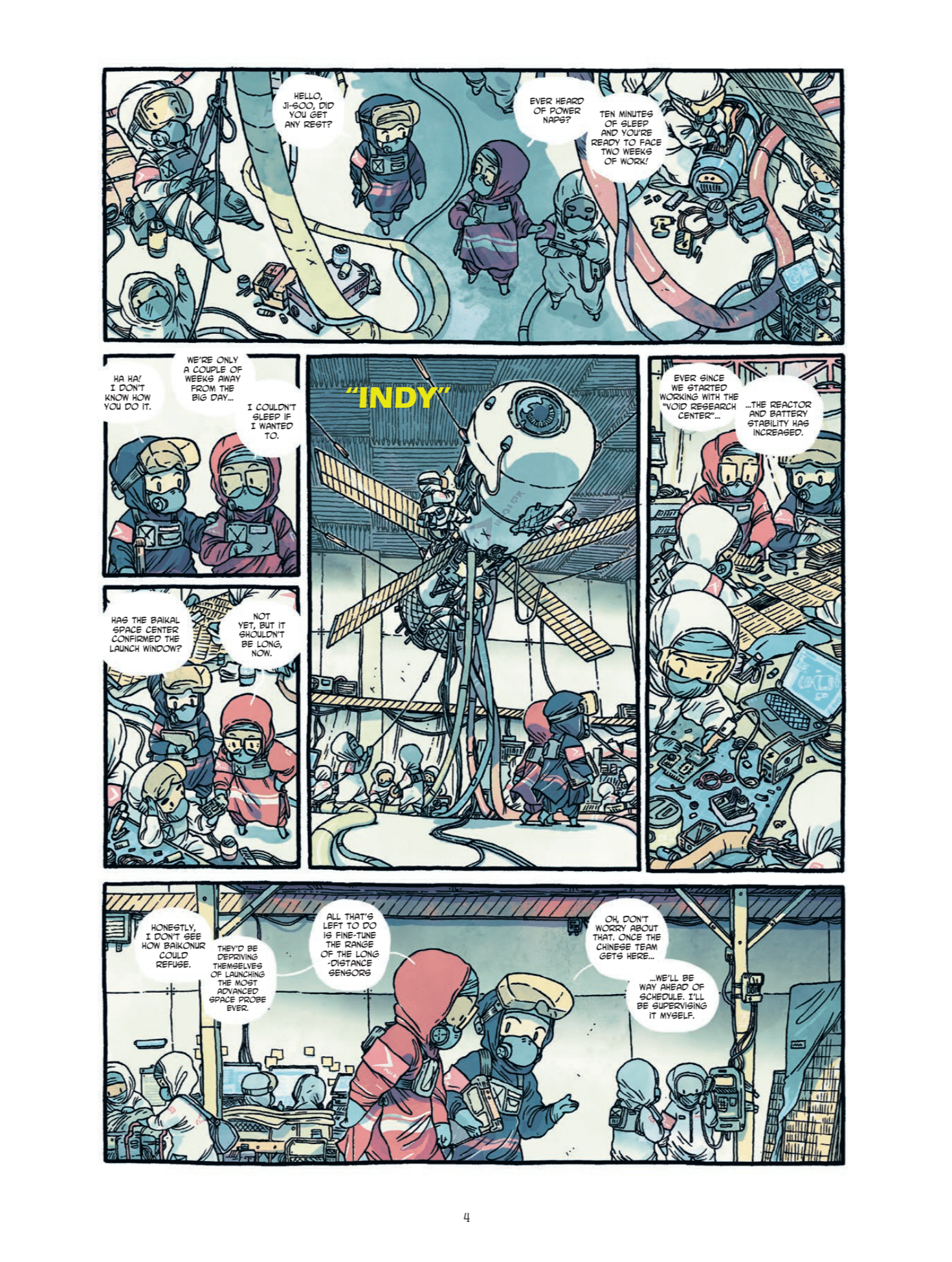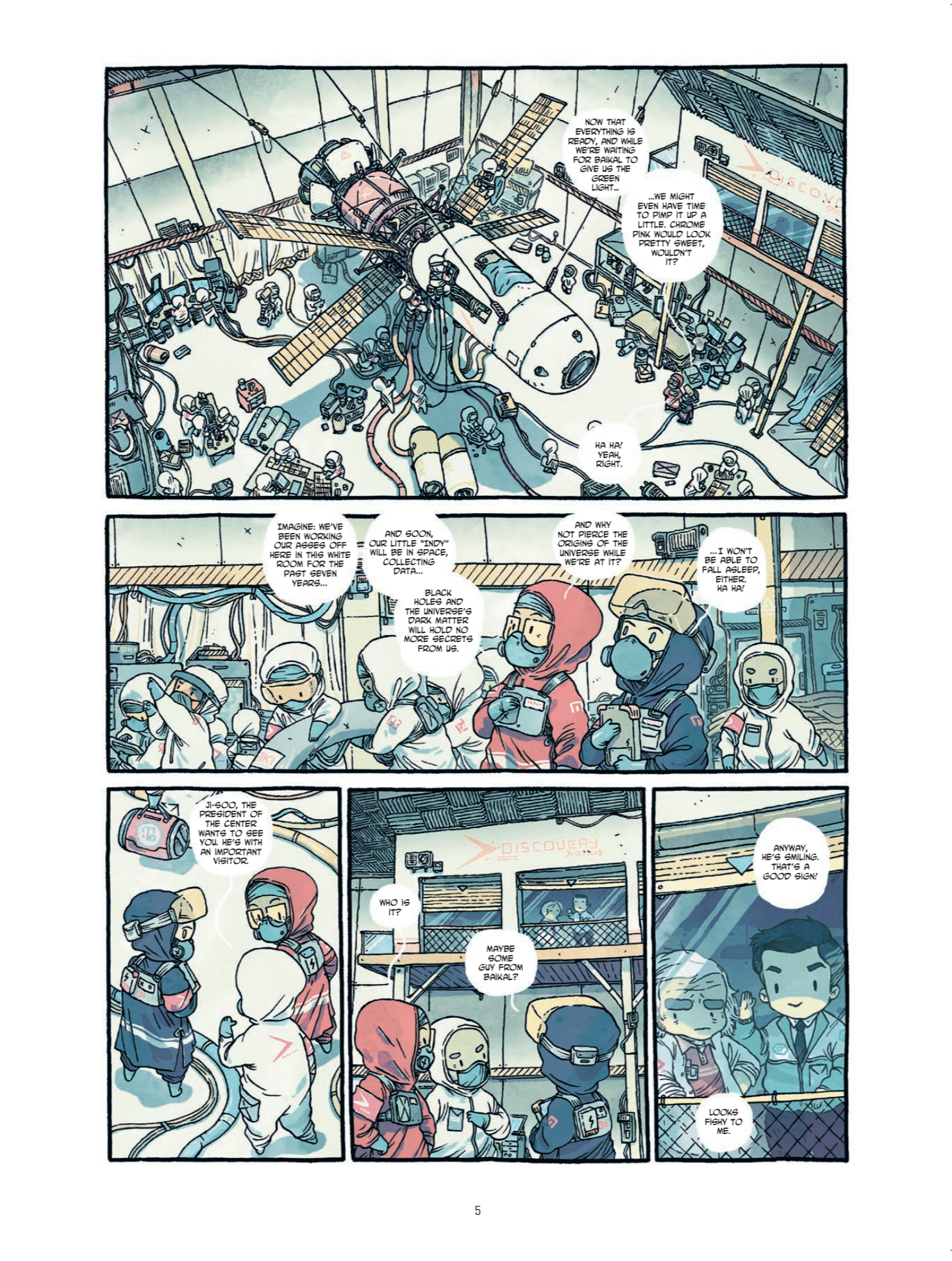 Frontier was born from my love for science fiction, for more than 10 years little astronauts and ships have been dotting my sketchbooks,” said creator Guillaume Singelin. “In 2020 I began writing with the idea of ​​bringing freshness to the science fiction genre, whether graphically and in its melancholy but also positive tone. I’m excited that the book is now available to new readers. I hope they find that feeling of adventure, travel and the simplicity of everyday life and human connection—but also a new look at the genre and for others a gateway to new universes.”
