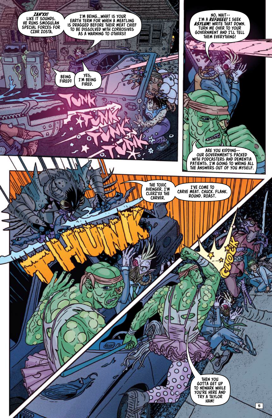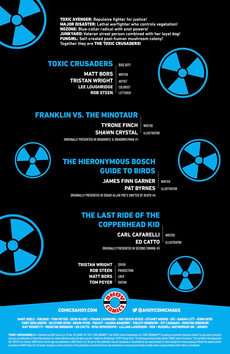 Toxie mastermind Matt Bors and explosive art powerhouse Tristan Wright bring the madness home in one gloriously gross, full-throttle finale! When the Smogulans launch their all-out siege on Earth and turn Tromaville into ground zero for mutant mayhem, the Toxic Crusaders are gonna need every last nasty trick they’ve got—every disgusting glob of snot NoZone can blast, every infectious nightmare Fungirl can unleash, and every chaotic payload Major Disaster can hurl! It’s loud, wild, toxic, and totally unhinged in the best possible way. SPLAT!