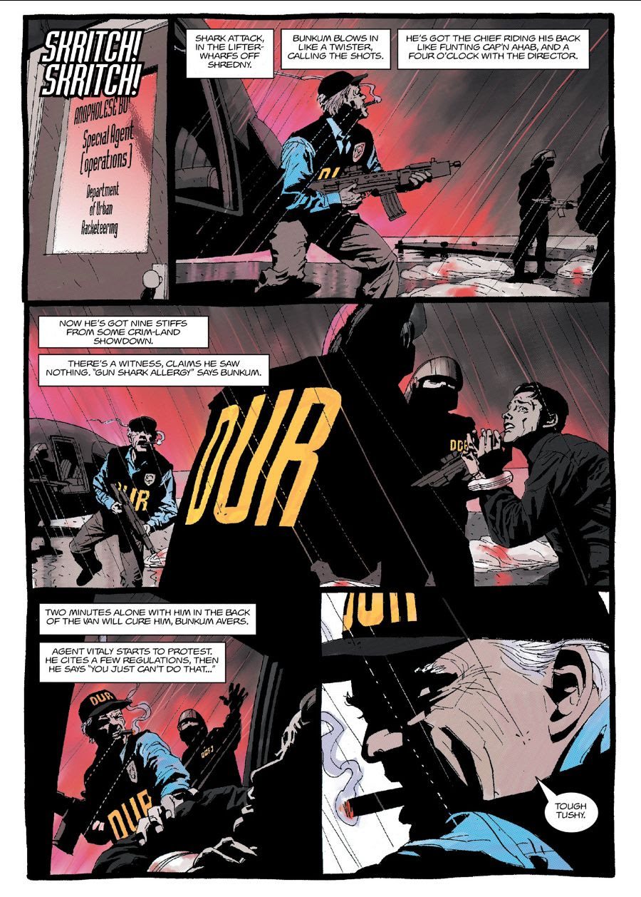 Quickly proving himself a fan-favourite on stories like Danzig’s Inferno and Vector 13, Phillips then provided art for Sinister Dexter and Judge Dredd, amongst others. Perhaps his best-known work for 2000 AD remains the two iconic characters he co-created for The Galaxy’s Greatest Comic, however: vampiric Judge exorcist Devlin Waugh, and no-nonsense Brit-Cit Detective Armitage.