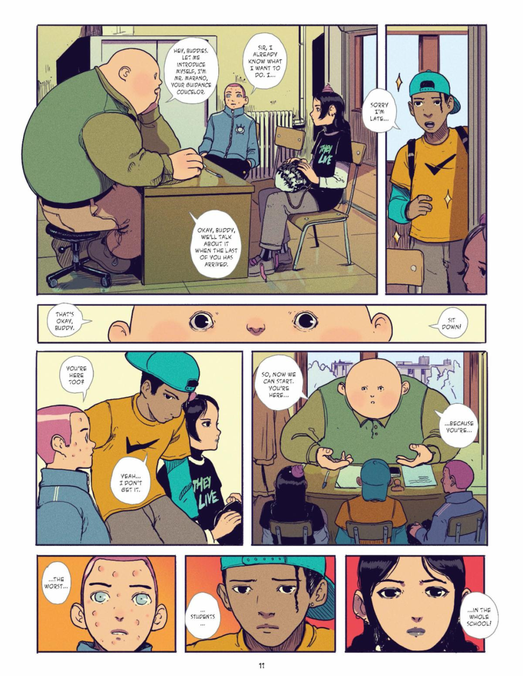 In a world built on conformity, there’s no room for dreamers, but two audacious teens are determined to put that to the test… even if it kills them in INFANTOMS. At school, “Pizza Face” doesn’t exactly shine with his report card. On the contrary, he’s one of the worst dunces in school. He dreams of opening a video game store, but that’s about the extent of his ambition. He’s summoned into the guidance counselor’s office, along with a rebellious girl named Mims. Mims loves manga and doesn’t care about the system. But both of their futures are at stake this decisive year… If they fail, their parents are authorized to literally kill them! The pressure of this strange new policy begins to weigh on the teenagers’ shoulders, and their parents begin to slowly mutate into monsters. Can their parents really kill them if they fail classes? Pizza Face and Mims bond to face this existential threat, but soon the situation spirals out of control, and their race for merit becomes a race for survival, a downward spiral in a conformist world that leaves little room for imagination.